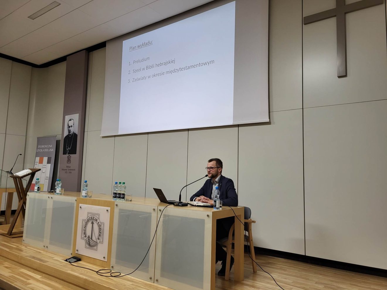 Pierwszy wykład pt. „… i nie pozostawisz mojej duszy w Szeolu” (Ps 16,10). Szeol i Otchłań – rozwój teologii życia pozagrobowego w Starym Testamencie” zaprezentował ks. dr Grzegorz Olek – duchowny Kościoła ewangelicko-augsburskiego (luterańskiego), dr teologii ewangelickiej w zakresie biblistyki Nowego Testamentu. Duchowny wskazał na znaczenie Otchłani – Szeolu – w słowie Bożym, ale również w świadomości Narodu Wybranego.