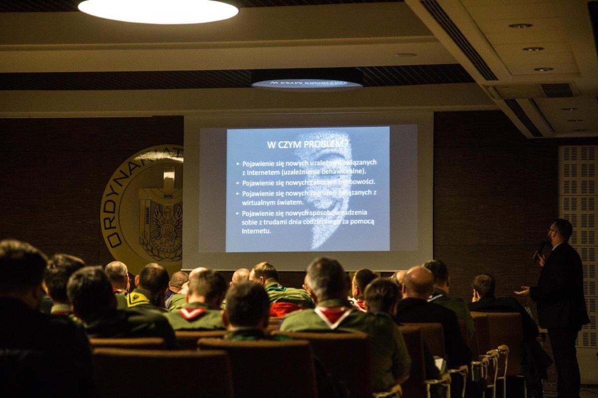 Ks. Wojciech Szychowski, psycholog omówił zagrożenia związane z uzależnieniem od Internetu, a także kwestie związane z pojęciem e-tożsamości. Podkreślił, że niewłaściwe korzystanie z Internetu może stanowić poważne zagrożenia dla zdrowia psychicznego, więzi rodzinnych, często prowadzą do uzależnień od hazardu, pornografii czy zakupów. Przekazał kapelanom testy, które pomagają zdiagnozować problem uzależnienia od Internetu. Zachęcał, aby pytania w nich zawarte stanowiły np. kanwę rozmowy z młodymi, których podejrzewają o uzależnienie.