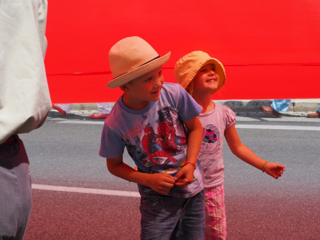 Półkilometrowy baner z tekstem Evangelium Vitae na Marszu dla Życia i Rodziny