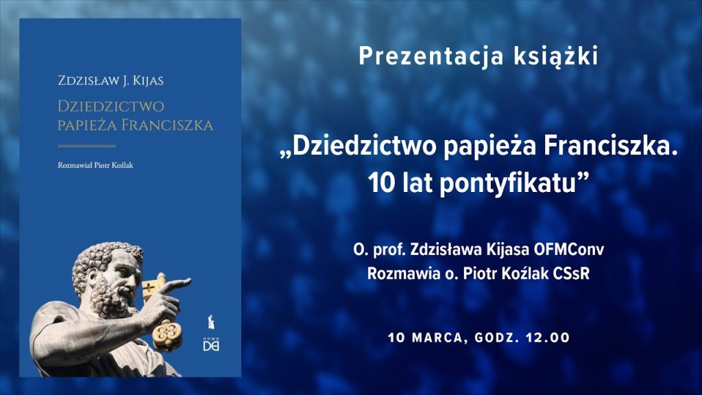 W związku z 10. rocznicą pontyfikatu papieża Franciszka Katolicka Agencja Informacyjna zaprasza na prezentację książki „Dziedzictwo papieża Franciszka. 10 lat pontyfikatu”. Publikacja, w formie rozmowy, którą z o. prof. Zdzisławem J. Kijasem OFMConv prowadzi o. Piotr Koźlak CSsR, omawia 11 dokumentów papieskich, najważniejszych w jego dotychczasowej posłudze na Stolicy Piotrowej. Prezentacja odbędzie się w najbliższy piątek 10 marca o godz. 12.00 w Sekretariacie Konferencji Episkopatu Polski w Warszawie.