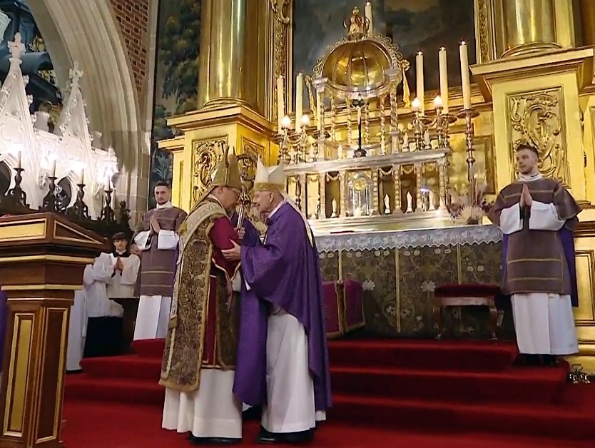 Niech wstawiennictwo św. Jana Pawła II, który przed laty zasiadał na tej katedrze biskupiej, wyprasza Ci łaskę mężnego głoszenia Ewangelii – napisał przewodniczący Konferencji Episkopatu Polski abp Tadeusz Wojda SAC w liście gratulacyjnym do kard. Grzegorza Rysia z okazji ingresu do bazyliki archikatedralnej na Wawelu.