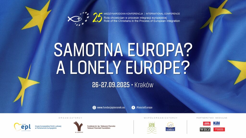 W dniach 26–27 września 2025 roku w Krakowie odbędzie się jubileuszowa, XXV edycja Międzynarodowej Konferencji z cyklu „Rola chrześcijan w procesie integracji europejskiej”. Tegoroczne spotkanie, organizowane pod hasłem „Samotna Europa”, zgromadzi czołowych ekspertów, polityków, duchownych i przedstawicieli świata nauki z różnych krajów. Dyskusje będą koncentrować się wokół kluczowych wyzwań, przed jakimi stoi nasz kontynent: od […]