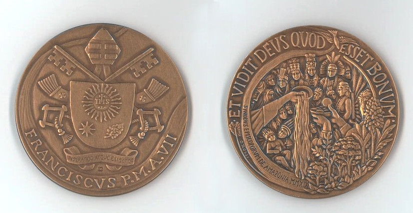 Od dziś w Watykanie dostępny jest oficjalny medal z okazji 7. rocznicy pontyfikatu papieża Franciszka. Awers medalu ukazuje – jak zwykle – herb papieski Franciszka z napisem: „Franciscus P.M.A.VII”, natomiast na rewersie umieszczono motyw związany z planowanym na październik synodem specjalnym biskupów na temat Amazonii, a nad nim łaciński cytat „I Bóg widział, że wszystko, co uczynił, było dobre”.