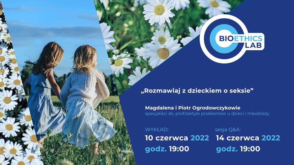 Jak rozmawiać z dziećmi o seksualności? Jak przebiega prawidłowy rozwój psychoseksualny dziecka? W jaką wiedzę wyposażyć swoją pociechę, aby bezpiecznie przeżyła wakacje? Na te pytania odpowiedzą Magdalena i Piotr Ogrodowczykowie – specjaliści ds. profilaktyki problemów u dzieci i młodzieży, w czasie kolejnego wykładu z cyklu Bioethics Lab organizowanego przez Interdyscyplinarną Akademię Bioetyki.
