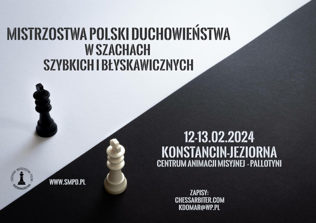XXIII Międzynarodowe Mistrzostwa Polski Duchowieństwa w szachach klasycznych odbędą się w Wyższym Seminarium Duchownym Towarzystwa Chrystusowego dla Polonii Zagranicznej, ul. Marii Panny 4, 61-108 Poznań, w dniach od 8 do 12 lipca 2024 roku na dystansie 9 rund systemem szwajcarskim. Tempo gry: 90′ + 30” na ruch. Turniej zgłoszony do klasyfikacji rankingowej FIDE. Mogą w nich wziąć […]