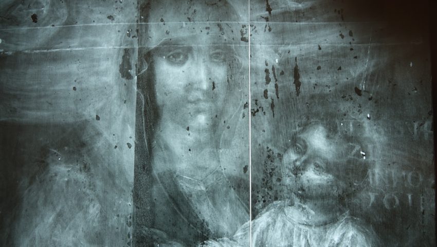 Zdjęcie rentgenowskie udowodniło, że pierwotnie obraz nie przedstawiał Matki Boskiej, lecz „portret mężczyzny w paradnym stroju z szerokim kołnierzem oraz lewą ręką wspartą na rękojeści szabli, zawieszonej na zdobnym pasie”. Według duchownego, może był to obraz epitafijny, umieszczony w kościele w bliskości grobu zmarłego anonimowego czterdziestolatka.