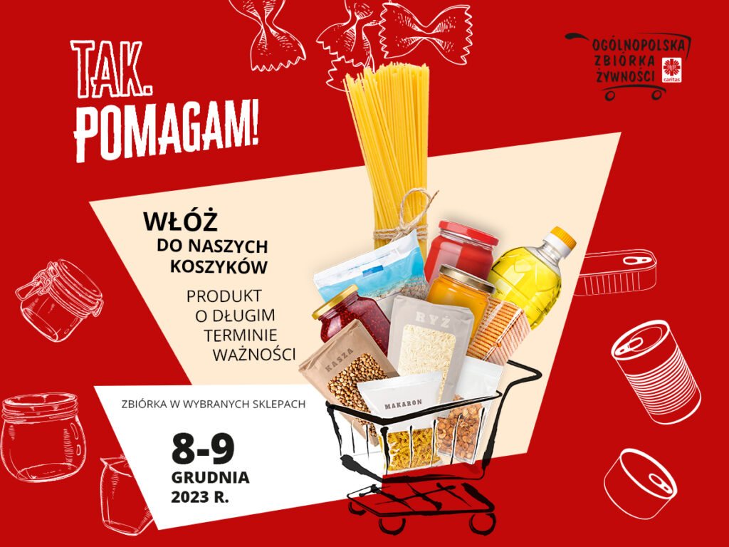 Akcja „Tak. Pomagam!”, która odbywa się dwa razy w roku, przed Bożym Narodzeniem i przed Wielkanocą, jest okazją do podzielenia się żywnością z potrzebującymi. Do koszyków ustawionych w sklepach będzie można wrzucać produkty o długim terminie przydatności do spożycia i łatwe w przechowywaniu, na przykład makaron, kasze, ryż, olej, kawę, herbatę, puszki, konserwy, cukier, bakalie, ciastka czy czekoladę. Wszystko to zostanie dobrze wykorzystane.