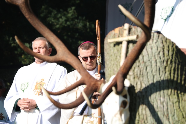 Fot. Ewa Kotowska-Rasiak/KAIBp Damian Bryl przewodniczył Mszy św. rozpoczynającej obchody Ogólnopolskiego Hubertusa w Tracach w diecezji kaliskiej. – Chcemy prosić Pana Boga, aby obdarzył nas mądrością, żebyśmy z tego pięknego świata, który nam dał umieli mądrze i odpowiedzialnie korzystać – mówił biskup kaliski.
