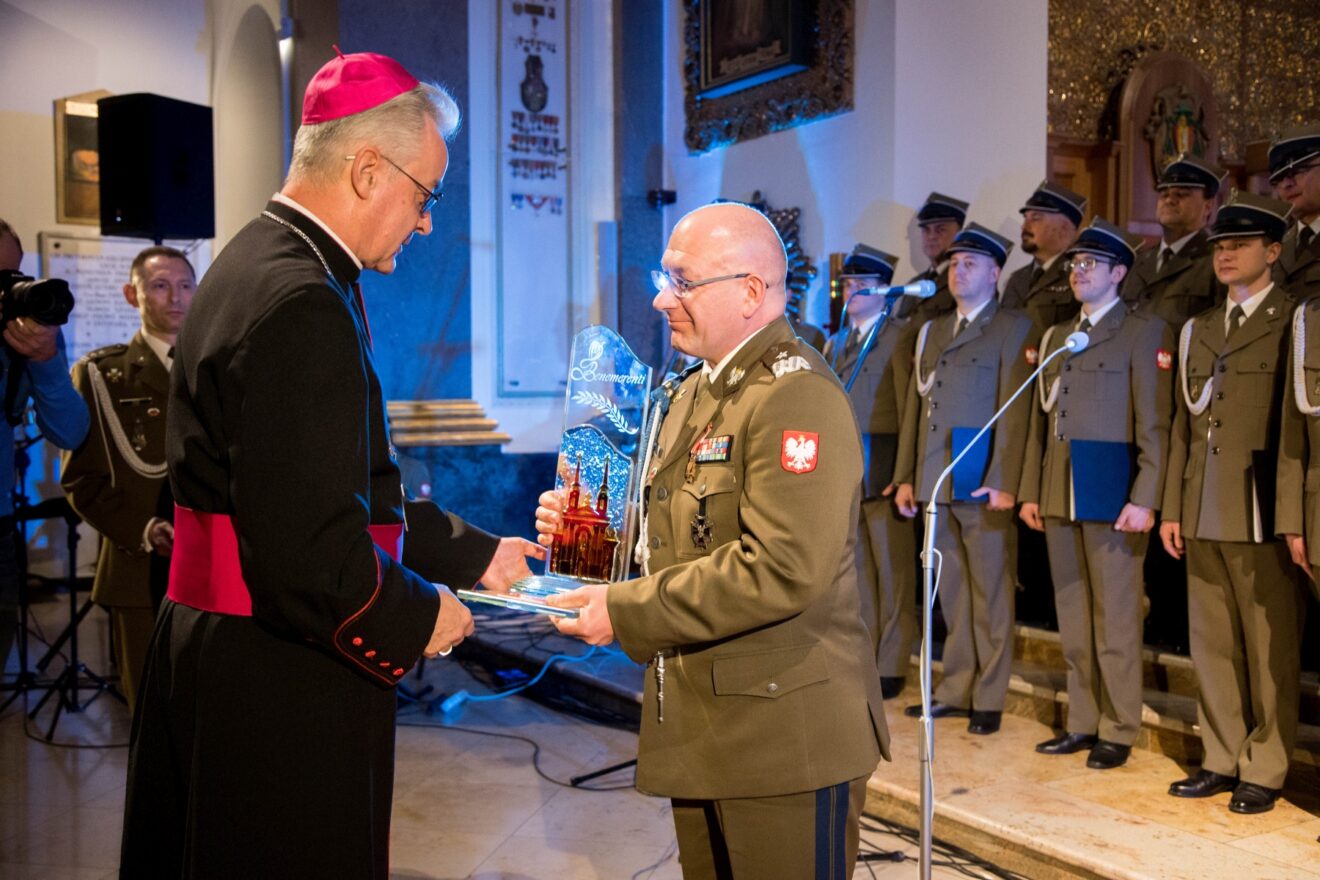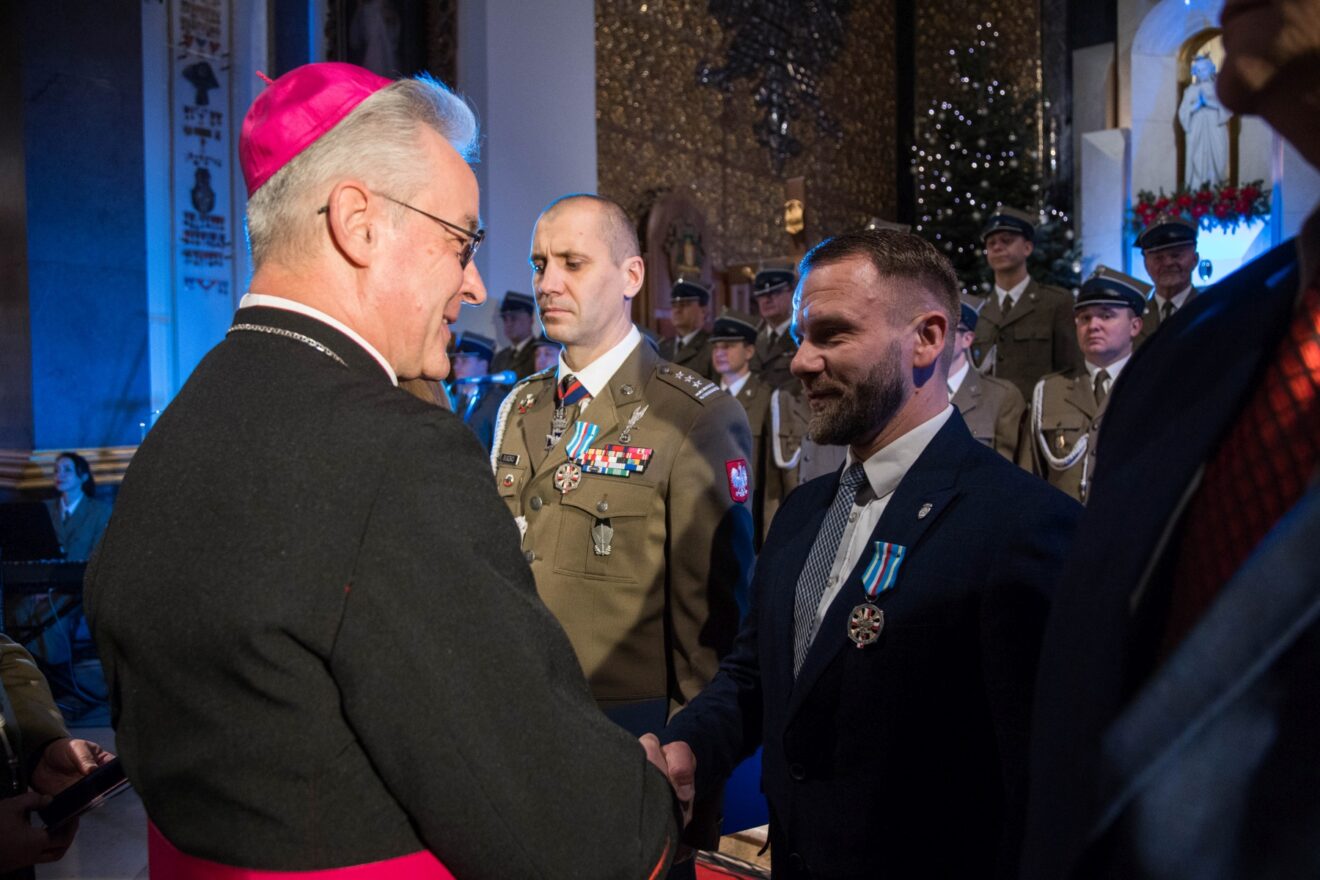 – Z całego serca dziękuję za przykład godny uznania i naśladowania. W walce z różnymi żywiołami, nie tylko zewnętrznymi, dajecie przykład, jak należy tę walkę „z” i „o” prowadzić. Robicie to w duchu służby. W odniesieniu do Was: żołnierzy WOT, Fundacji Wspieram Cicho i Skutecznie, rodziny sierż. Mateusza Sitka i pana Jacka Krzyżanowskiego to słowo „służba” nie razi patosem, ani też nie jest, jak się mówi, wyświechtane. Jest jak najbardziej na czasie i na miejscu – zwrócił się do laureatów bp Wiesław Lechowicz. Odniósł się do katedry polowej, w której odbyła się uroczystość. – Cieszę się, że mogłem te wyróżnienia wręczyć wam w tym miejscu, gdzie codziennie zanoszone są modlitwy za żołnierzy Wojska Polskiego i pracowników resortu obrony narodowej, a także za wszystkich funkcjonariuszy służb mundurowych. Przykłady, którymi świecicie są dowodem, że nasze modlitwy przynoszą skutek – naznaczeni Bożym błogosławieństwem podejmujecie skuteczne działania na rzecz ochrony naszego pokoju i bezpieczeństwa, a nawet wykraczacie ponad zakres waszych obowiązków – dodał.