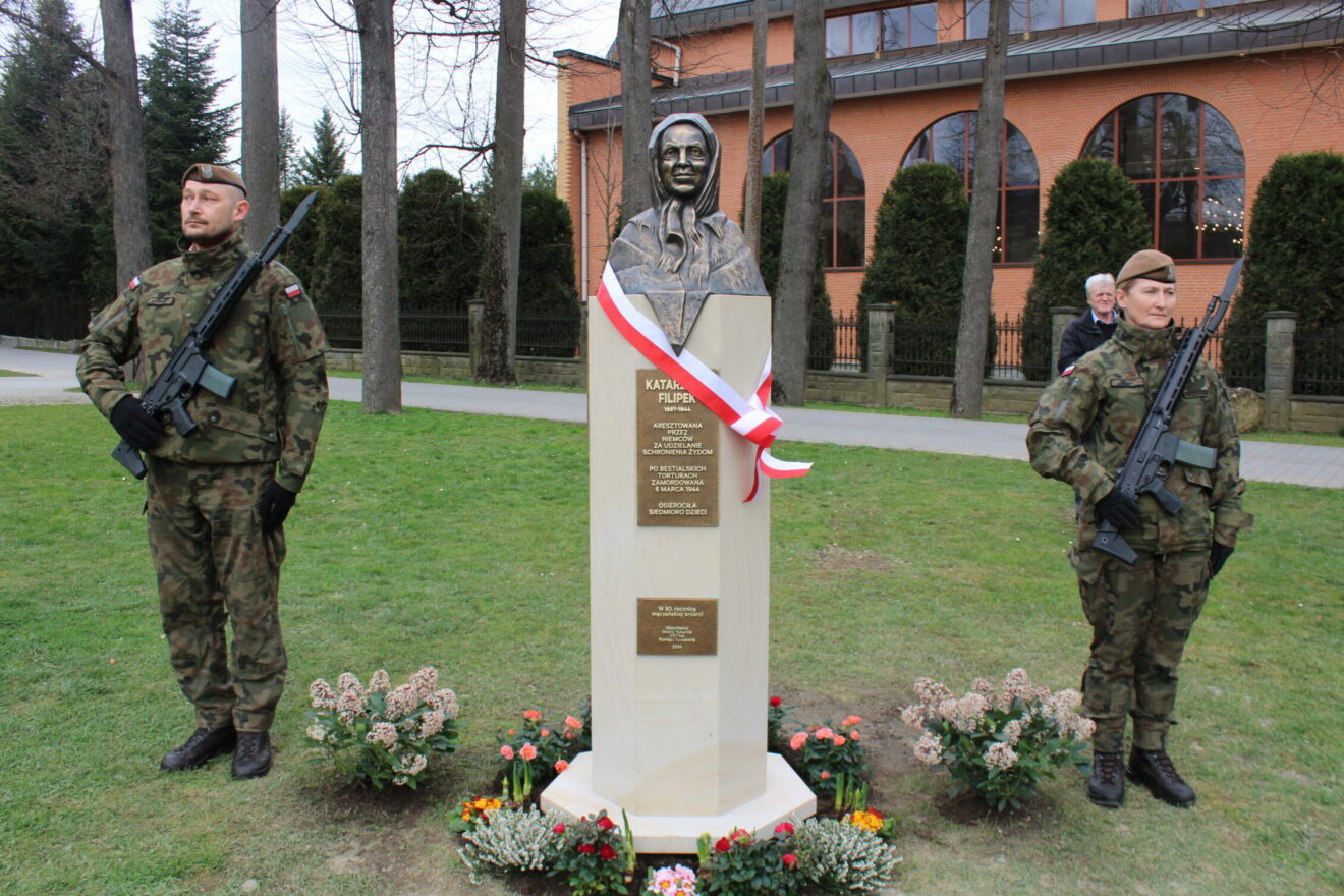 Fot. Jan Głąbiński Była odznaczona medalem Sprawiedliwi wśród Narodów Świata. Podczas II wojny światowej, 80 lat temu została zamordowana przez Niemców za pomaganie Żydom. W Tokarnii koło Myślenic w Małopolsce odsłonięto w niedzielę pomnik Katarzyny Filipek. Uroczystościom przewodniczył kard. Stanisław Dziwisz. Na zakończenie, młodzi aktorzy przedstawiający dzieci bohaterki, wypuścili w niebo siedem białych gołębi.