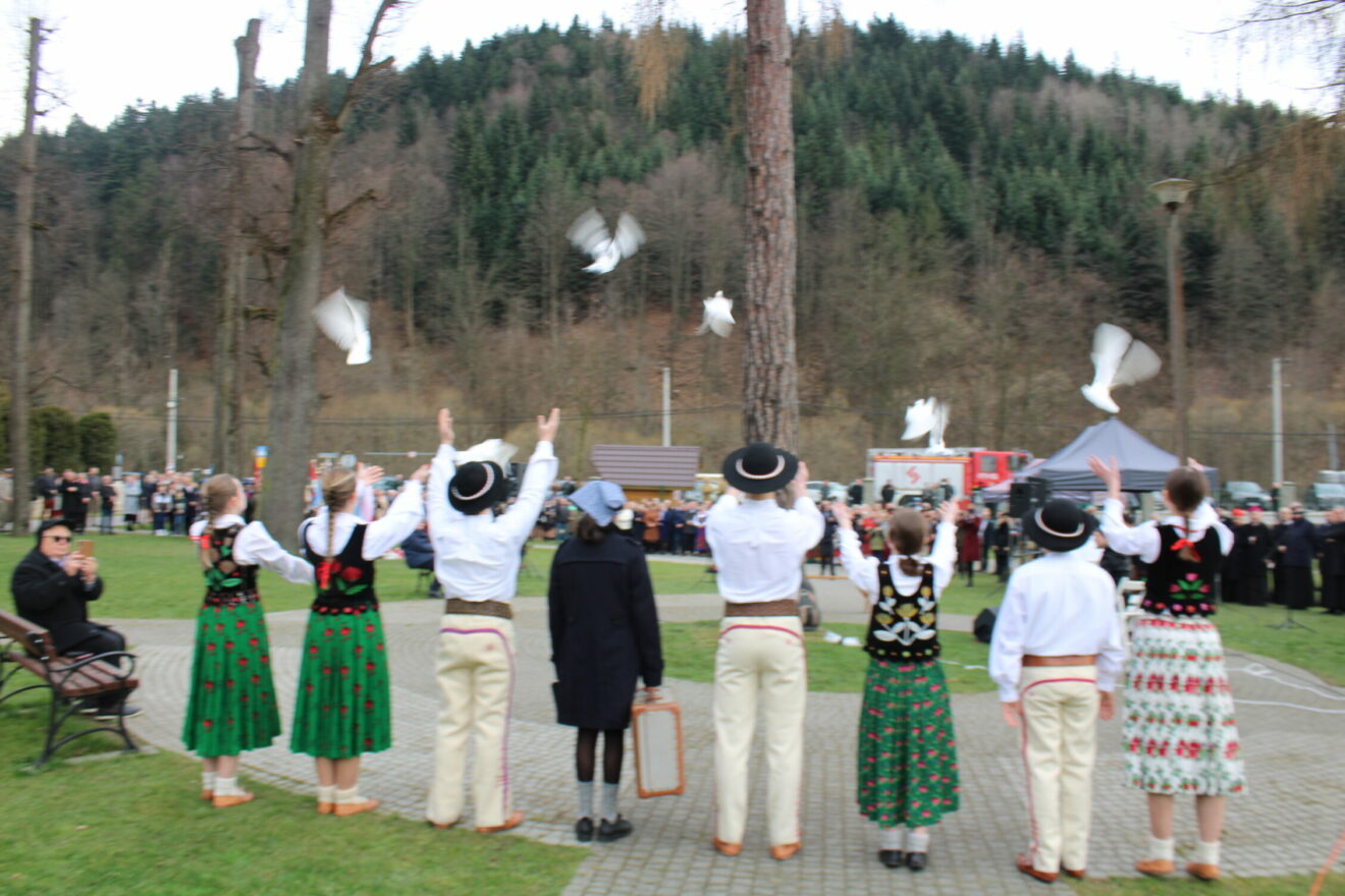 Podczas niedzielnych uroczystości odbył się krótki recital i przedstawienie młodzieży z bardzo symbolicznym zakończeniem. Aktorzy, którzy wcielili się w dzieci zamordowanej wypuścili w niebo białe gołębie.