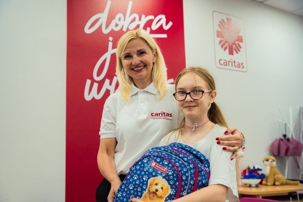 Pierwszy szkolny dzwonek w poniedziałek 2-go września 2024 roku zadzwoni w tym roku nie tylko dla polskich dzieci. – Ten rok jest szczególny, ponieważ pojawił się obowiązek szkolny dla dzieci z Ukrainy mieszkających w Polsce. Oczywiście pamiętamy również o nich i przekażemy im 2000 tornistrów – mówi Magdalena Antolik, specjalistka. ds. programów dziecięcych w Caritas Polska. Takie wsparcie otrzymały również dzieci w Centrum Pomocy Migrantom i Uchodźcom Caritas Polska w Warszawie, na co dzień podopieczni placówki. Tylko w tej edycji programu kilkaset maluchów, będzie mogło cieszyć się tornistrami wypełnionymi przyborami szkolnymi. W plecakach znajdą się m. in. kredki, pędzle, cyrkiel, nożyczki, blok rysunkowy, gumka czy zeszyty. Wszystko spakowane i dopasowane do potrzeb uczniów. – Co roku wielu rodziców puka do naszych drzwi z prośbą o pomoc w zakupie wyprawki szkolnej i plecaka. W tym roku od września, w związku z obowiązkiem szkolnym dla dzieci ukraińskich, spodziewamy się, że tych rodziców będzie więcej. Zatem, cieszymy się bardzo, że możemy pomóc i zapraszamy serdecznie do naszego centrum. Liczymy, że będzie to duże wsparcie, zarówno dla dzieci jak i rodziców. Życzymy wszystkim udanego roku szkolnego – mówi Renata Makuch, Koordynatorka Centrum Pomocy Migrantom i Uchodźcom Caritas Polska w Warszawie.