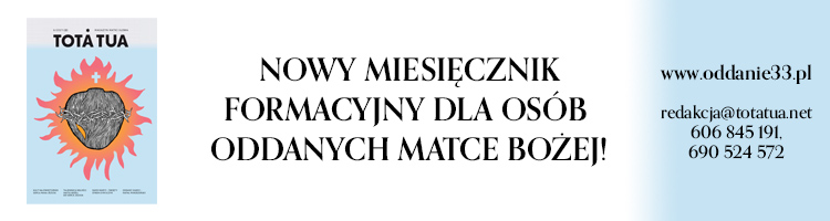 materiały prasoweUkazał się drugi numer nowego miesięcznika “TOTA TUA – Magazyn Matki Słowa”, którego głównym celem jest duchowa formacja osób żyjących oddaniem się Jezusowi przez Maryję. Jest to odpowiedź na pragnienie coraz większej liczby osób, które weszły na drogę całkowitego oddania się Matce Bożej i chcą iść śladami św. Ludwika de Montfort, św. Maksymiliana Kolbe, Prymasa Stefana Wyszyńskiego czy św. Jana Pawła II.