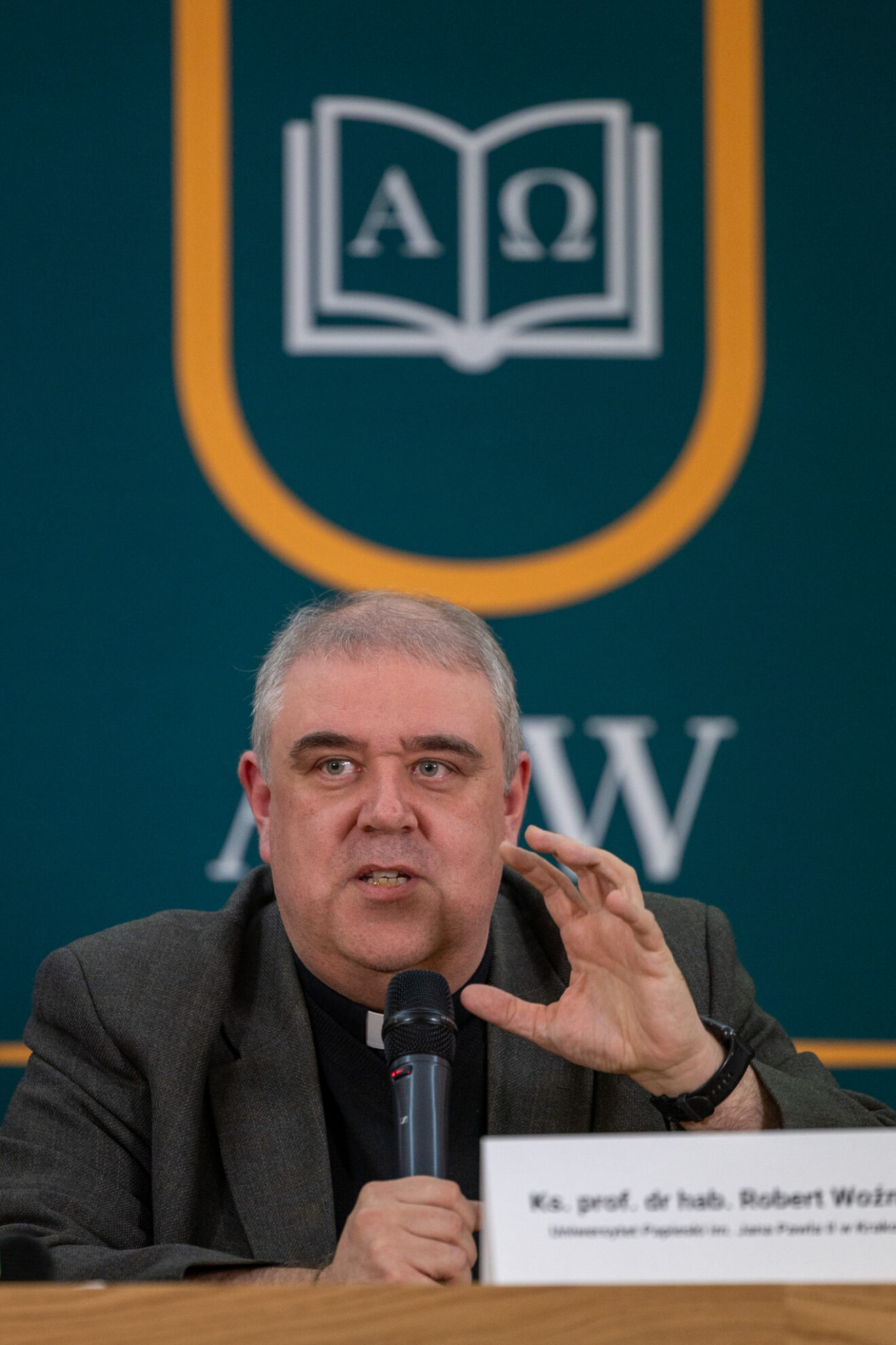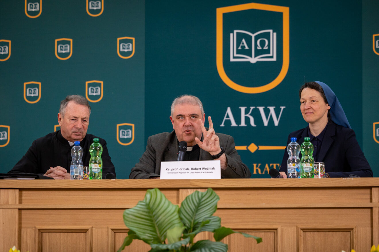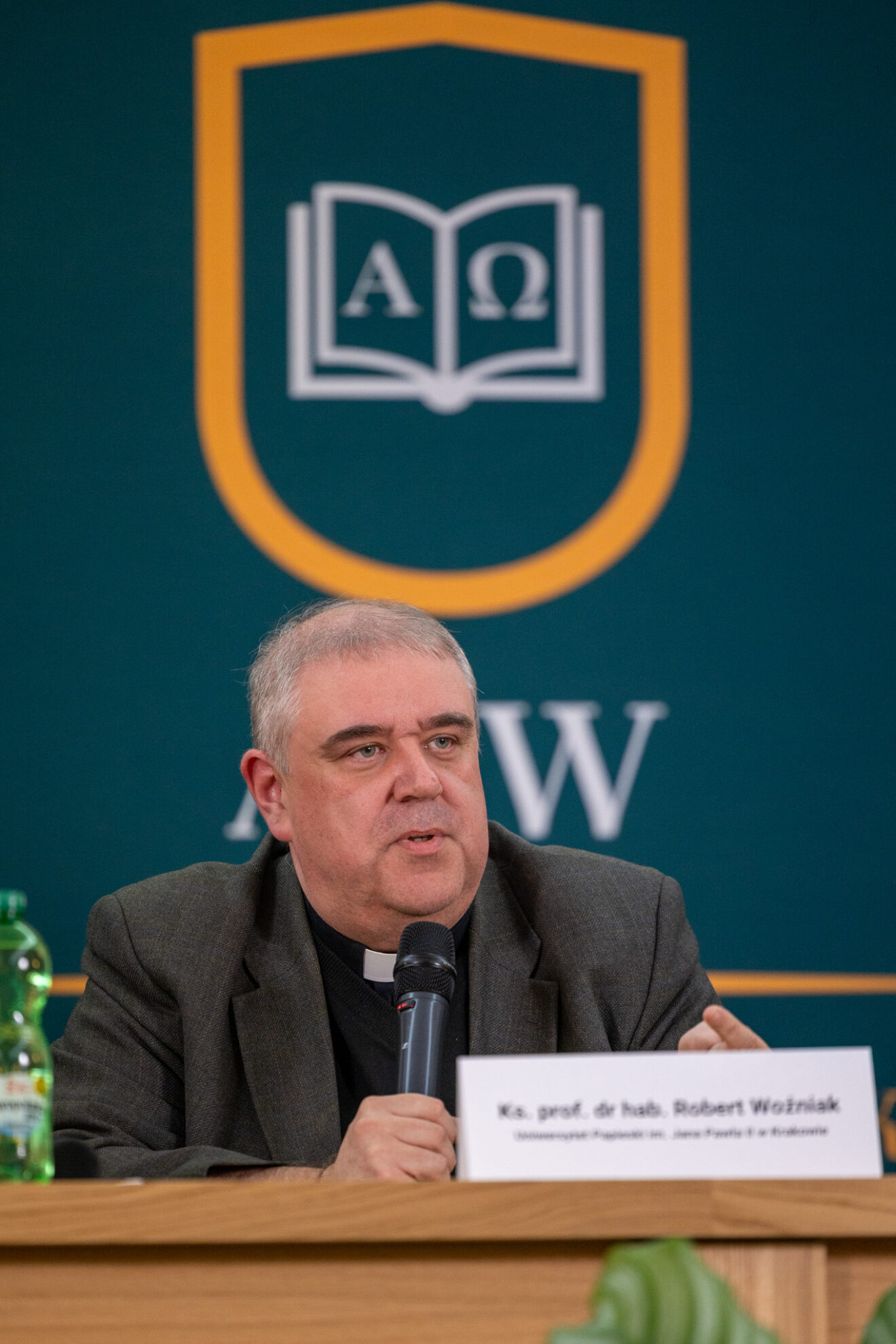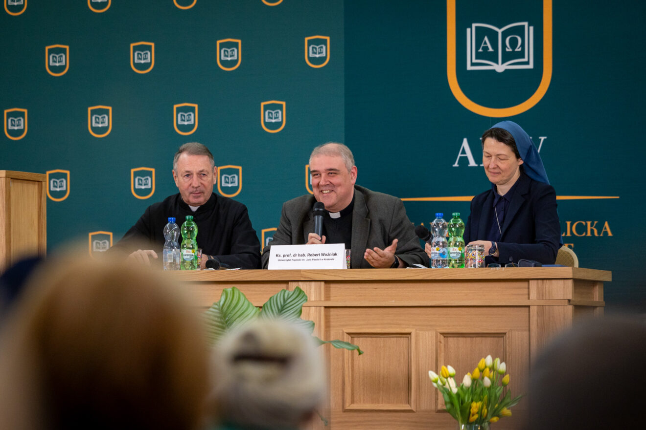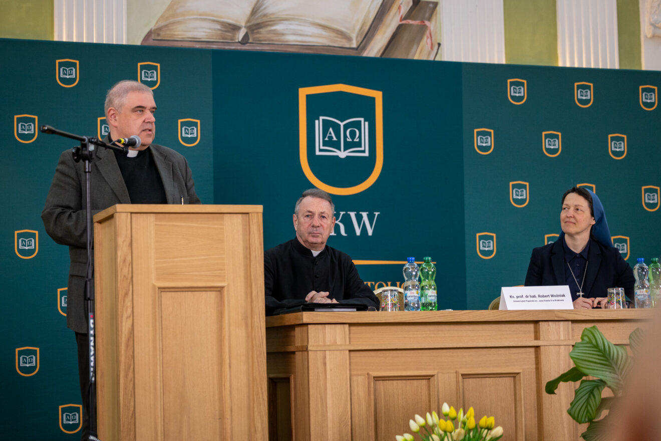 Prelegent, ks. prof. Robert Woźniak (UPJPII) zauważył na wstępie, iż wszelkie życie duchowe definiuje to, co się wydarza w Bogu, w Trójcy Świętej – między Ojcem, Synem i Duchem Świętym. Bóg nie jest monolitem, samotnikiem. On jest pełnią dynamizmu życia. Chociaż prawda o Trójcy jest najistotniejszym dogmatem chrześcijańskiej wiary, słabo przenika do świadomości wierzących. Często stajemy bezradni wobec tajemnicy, która nas przekracza i nie mogąc jej zrozumieć, odchodzimy od niej – zauważył teolog. A przecież cały Nowy Testament to przekaz tej właśnie prawdy. To niejako „album rodzinny”, w którym Syn – Jezus Chrystus opowiada, objawia swojego Ojca i zapowiada dar Ducha Świętego. Chodzi więc o to, by wpatrywać się, wsłuchiwać w Jezusa i na Jego obliczu odkrywać obecność Ojca – bo jedyną nam dostępną „ikoną” Trójcy Świętej jest sam Jezus. Aby przyjąć Jezusa potrzebujemy otrzymać Ducha Świętego, w myśl św. Bazylego Wielkiego – „tylko ten zobaczy Ojca w Synu, kto nosi w sobie Ducha Świętego”. Ten Duch przecież tak kształtował człowieczeństwo Jezusa, by ten stawał się ikoną Ojca. Misją Jezusa jest zaprosić nas do relacji z Ojcem i Duchem Świętym.