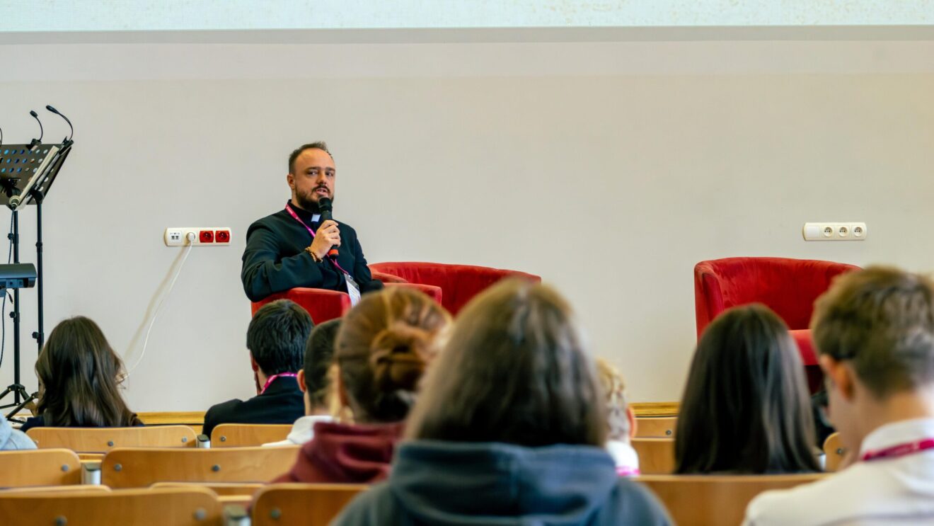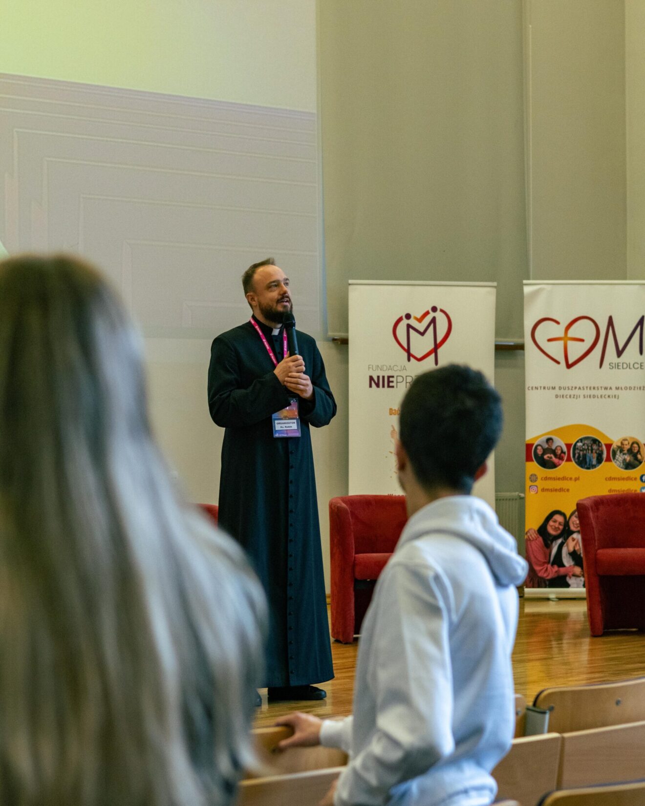 Forum rozpoczęło się konferencją ks. Radosława Piotrowskiego, diecezjalnego duszpasterza młodzieży. Duchowny zapytał młodych wprost, czy nie tęsknią za rzeczywistością. Odwołując się do czasu spędzanego przez młodzież w mediach społecznościowych i natłoku sprzecznych informacji, wskazał, że naturalne jest szukanie tego, co prawdziwe. Pytał, co naprawdę jest warte czasu i co może dać radość. – Odpowiedź jest prosta, choć trudna do przyjęcia przez wielu: to Pan Bóg nadaje sens życiu – podkreślił. Zwrócił uwagę, że w świecie pełnym nienawiści i braku szacunku młodym trudno jest uwierzyć w bezwarunkową Miłość Boga.