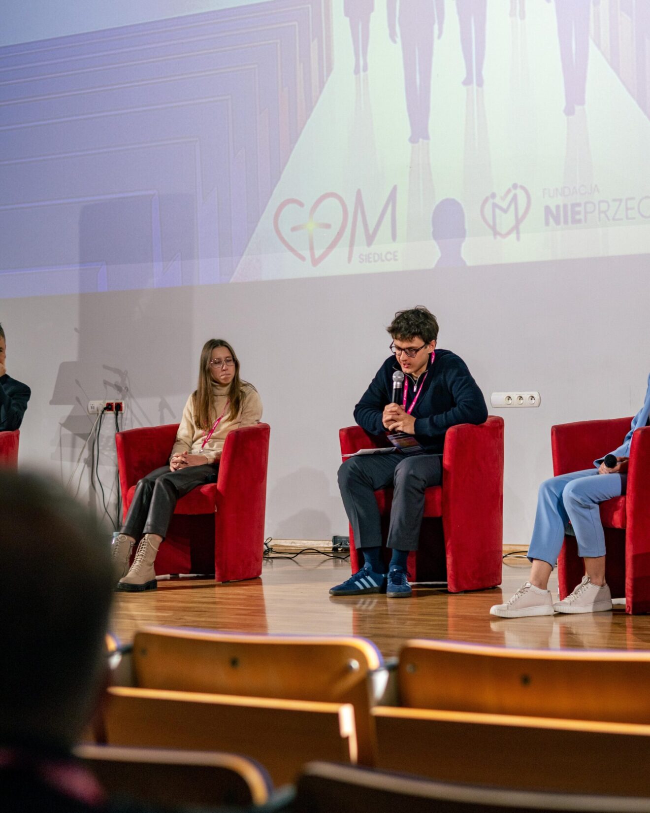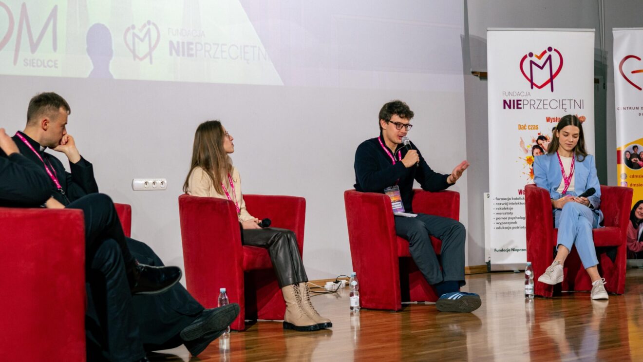 Spotkaniu przewodniczył Kacper Kowalczyk, który zadawał prelegentom liczne pytania, nawiązując w całym wydarzeniu do Orędzia Ojca Świętego Leona XIV na tegoroczny Światowy Dzień Młodzieży.
