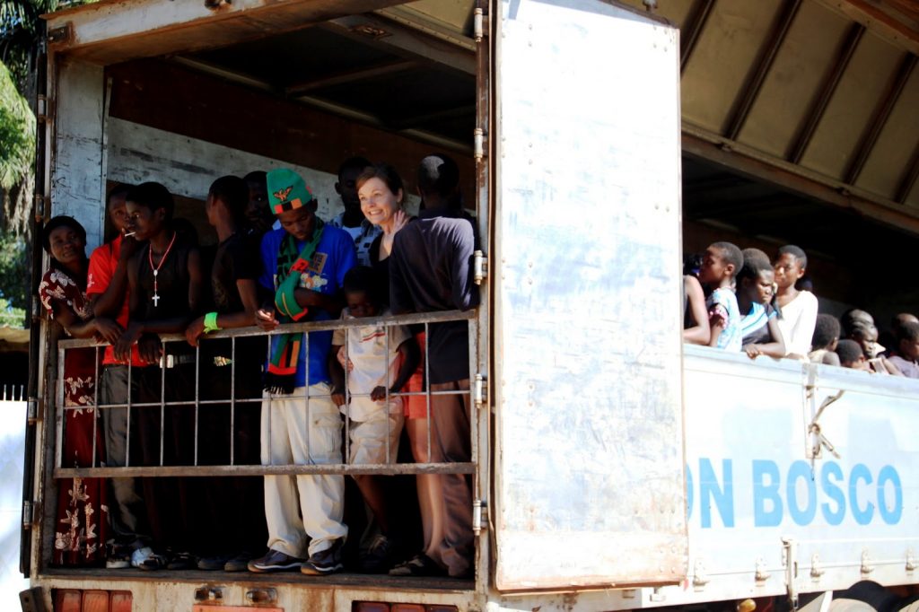 Na półmetku rekolekcji wyjeżdżamy nad jezioro do Kashi Kisi. 80 kilometrów, 164 młodych, rozwrzeszczanych murzynów, 3 Salezjanów, 1 Polka. Wciśnięta na przyczepie ciężarówki, pomiędzy czekoladowymi ciałami, nie muszę trzymać równowagi, bo nie mam miejsca żeby ruszyć stopą, a co dopiero żeby upaść.