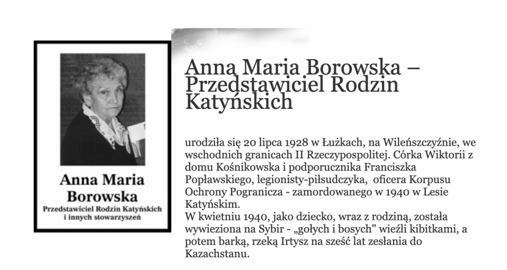 – Dla Anny Borowskiej – Katyń – to było wielkie dzieło, dlatego po 10 latach nieobecności chciała koniecznie stanąć na tamtej ziemi. Poleciała tam z wnukiem Bartoszem, który miał się nią opiekować – wspominała wiele lat temu nieżyjąca już Maria Surmacz, prezes Gorzowskiej Rodziny Katyńskiej.