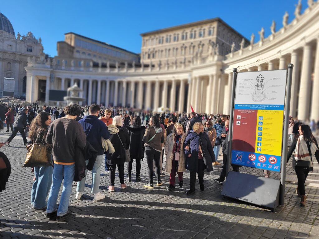 Ogromny napływ zwiedzających sprawia, że na wejście do bazyliki, poprzedzone obowiązkową kontrolą bezpieczeństwa, trzeba czekać nawet kilka godzin. Kolejka wydłuża się w wakacje, długie weekendy, ale nawet w listopadzie, który jest niskim sezonem turystycznym otacza Plac św. Piotra i wystawia na próbę cierpliwość zwiedzających.