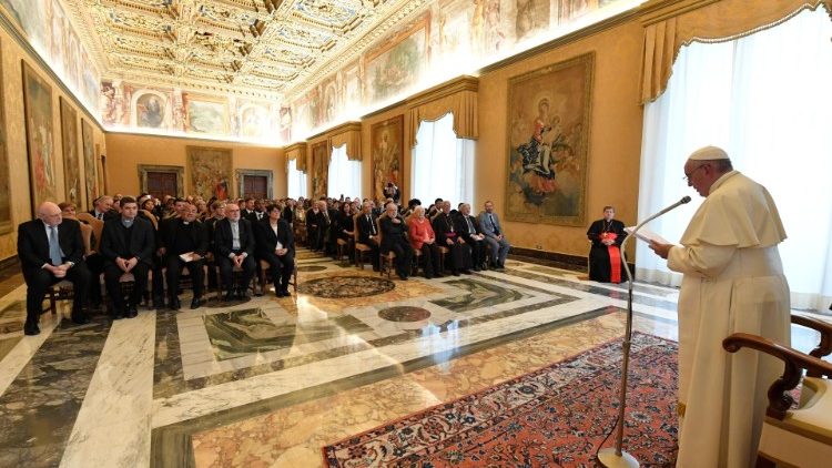 Fot. VaticanNewsPozdrawiając profesorów, wykładowców oraz studentów Uniwersytetu „Sophia”, powstałego z inspiracji ruchu Focolari w Loppiano, w Toskanii, papież Franciszek podkreślił trzy słowa klucze wskazujące kierunek jego rozwoju: mądrość, przymierze oraz wyjście.