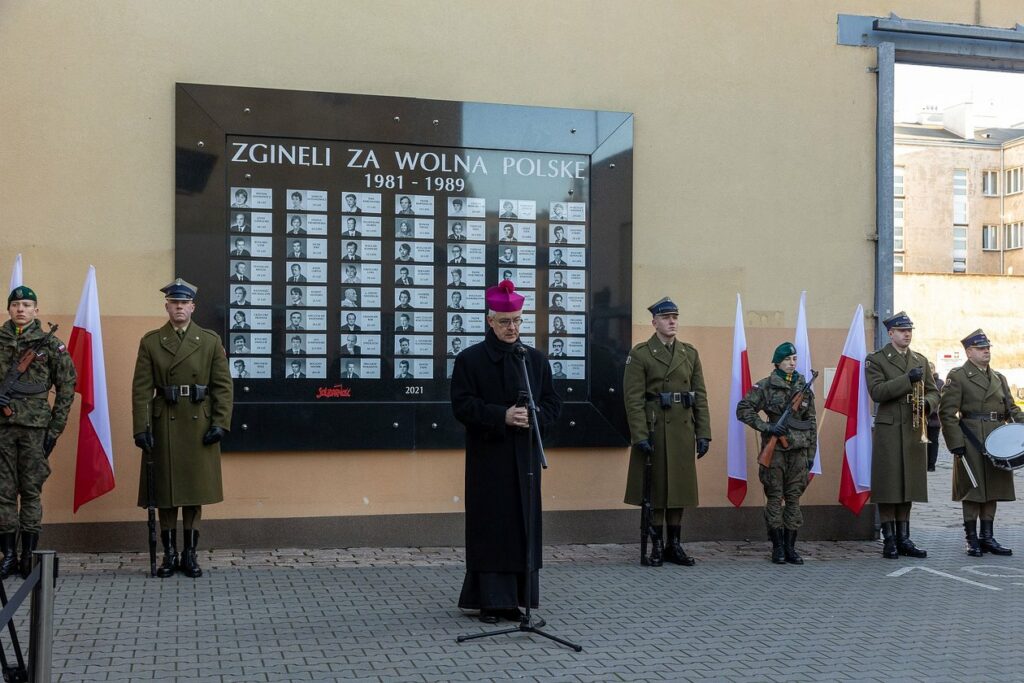 Po zakończeniu Eucharystii odbył się apel pamięci, podczas którego odczytano list od wicepremiera i ministra obrony narodowej Władysława Kosiniaka-Kamysza, głos zabrał także Mateusz Szpytma. Po odczytaniu wezwań apelu, oddana została salwa honorowa, po której odbyła się ceremonia złożenia kwiatów pod tablicą upamiętniającą ofiary stanu wojennego. Odbyła się też ceremonia wręczenia odznaczeń Krzyża Wolności i Solidarności byłym działaczom opozycji niepodległościowej z lat 1956–1989, które w imieniu prezydenta wręczył Karol Nawrocki, prezes IPN.