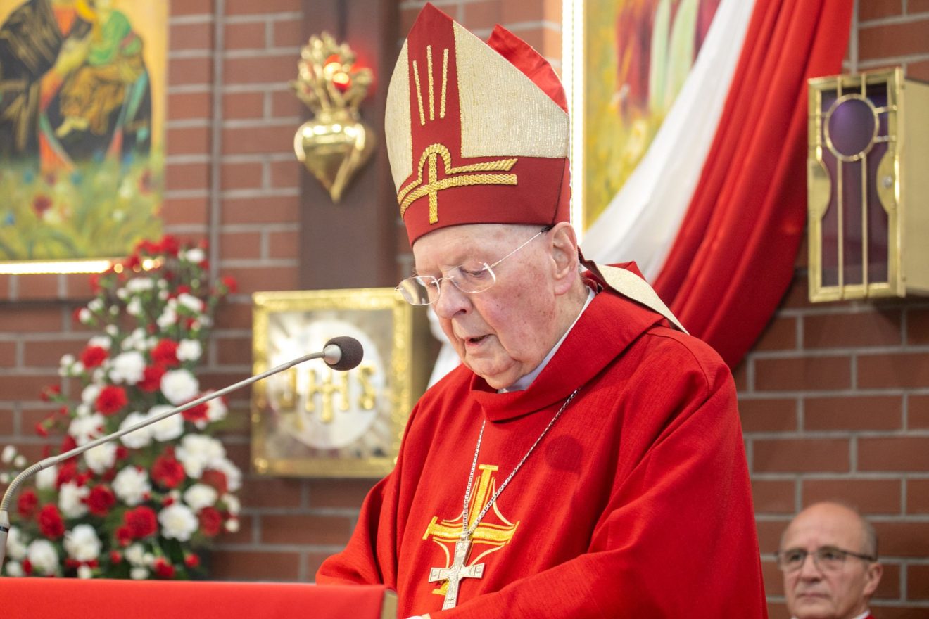 Przypomniał postać Polskiego Męczennika wskazując na to, że stojąc odważnie naprzeciw murów wrogości, nie dał się zawładnąć niszczącej sile nienawiści, której tak boleśnie doświadczał. – Od Chrystusa ukrzyżowanego i zmartwychwstałego czerpał siłę i moc, by nie załamać się w godzinie próby – powiedział. – Z odwagą żył po katolicku i wypełniał posługę kapłańską pomimo prześladowań reżimu komunistycznego oraz pogardy dla religii. Nieustannie upominał się o pokój między ludźmi i cechowała go ewangeliczna miłość do każdego człowieka. Znamy wszyscy dobrze motto jego przepowiadania: zło dobrem zwyciężaj! – podkreślił hierarcha.
