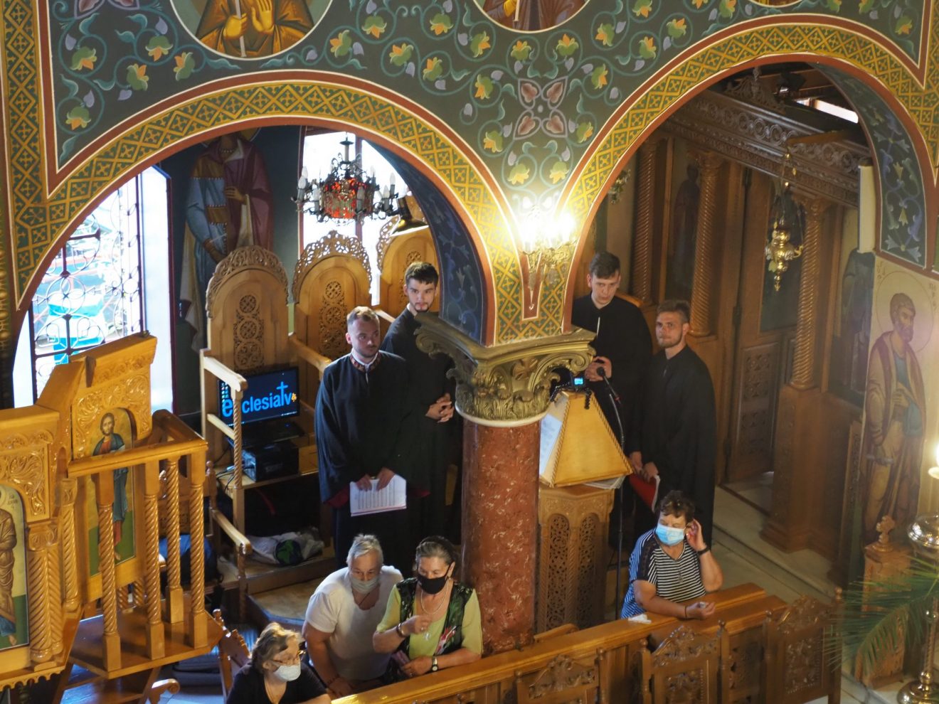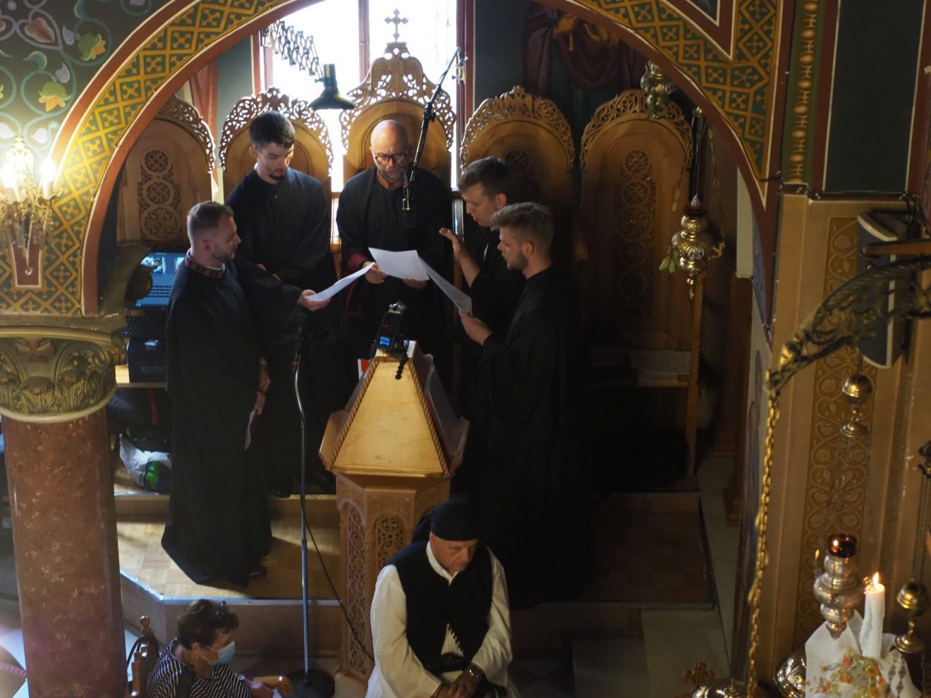 W liturgii udział wziął kameralny chór męskie „Grabarka”. Historycznym wydarzeniem było to, że pierwszy raz w trakcie Boskiej Liturgii w prawosławnej cerkwi wybrzmiało „Te Deum” po polsku, na melodię milenijną. Oprócz tego, na koniec zaśpiewano „Boże, coś Polskę”. Chór podczas liturgii śpiewał naprzemiennie z lokalnymi kantorami, wprowadzając do niej śpiewy liturgiczne w języku polskim i starocerkiewnosłowiańskim.