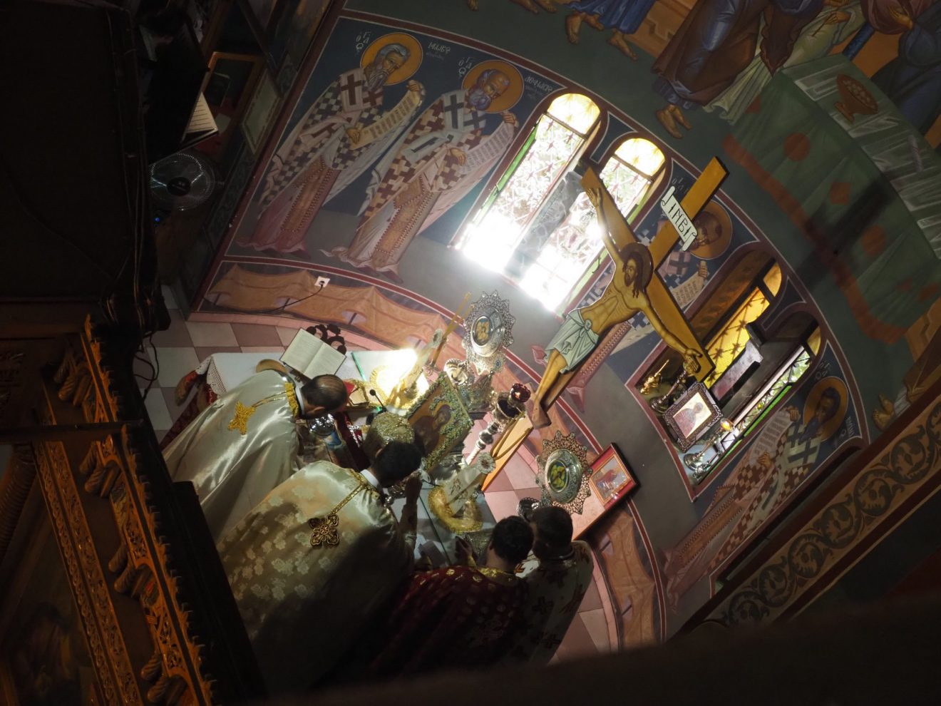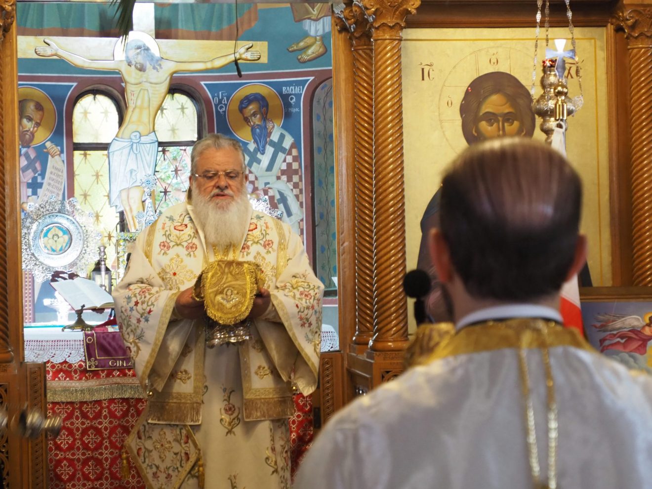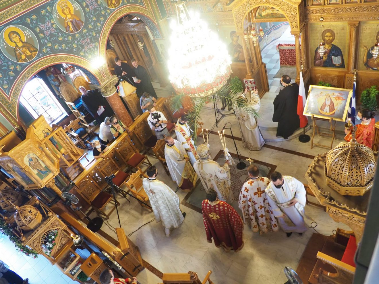 Uroczystej Boskiej Liturgii w cerkwi św. Mariny w Atenach-Heliopolis przewodniczył bp Demetrios Kantzavelos – biskup tytularny Mokissosu, biskup pomocniczy archidiecezji Ameryki Północnej Patriarchatu Ekumenicznego.
