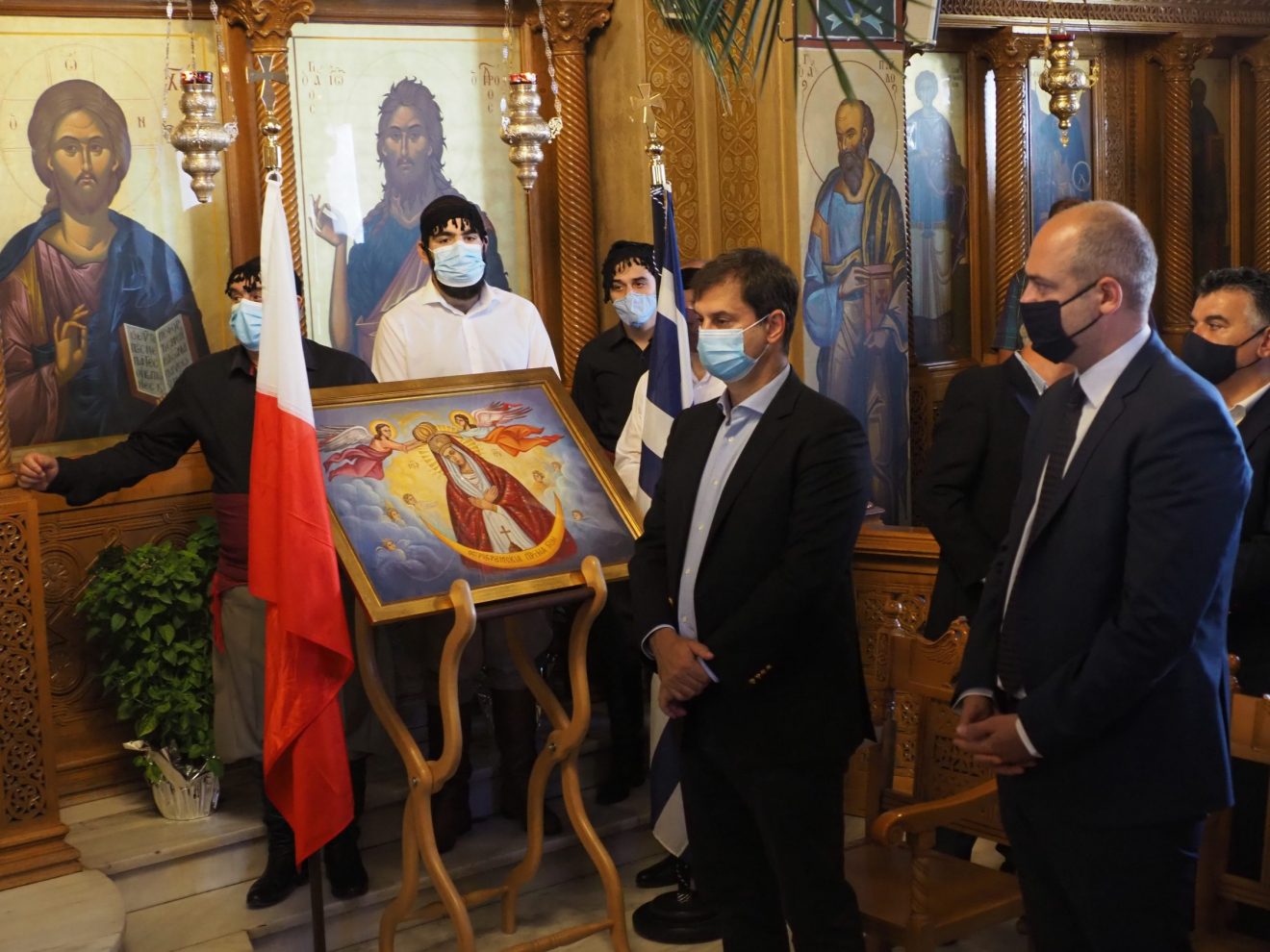 Ikona Matki Bożej Ostrobramskiej jako dar ówczesnego prawosławnego biskupa białostockiego trafiła do ateńskiej parafii w 1997 r. Od tego czasu intensywnie rozwijają się wzajemne kontakty między Polską a Grecją na płaszczyźnie kulturowej, społecznej i religijnej. Co roku w uroczystościach biorą udział politycy, samorządowcy i ludzie kultury z obu krajów.