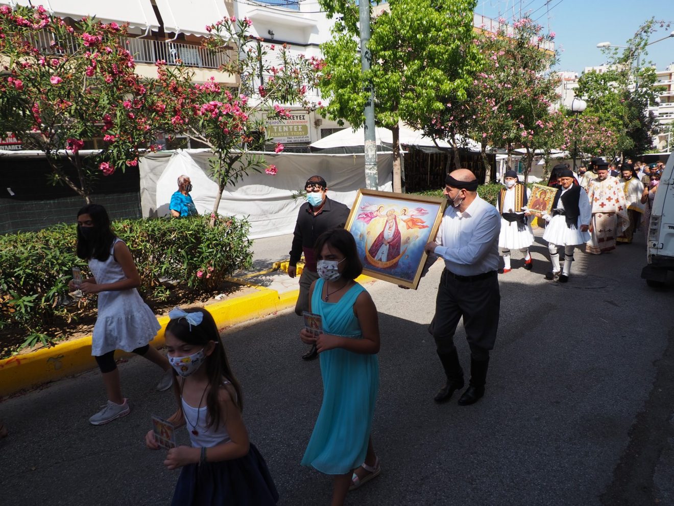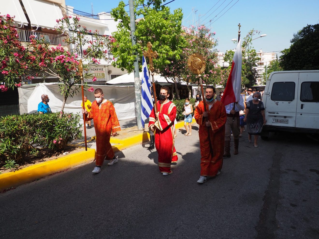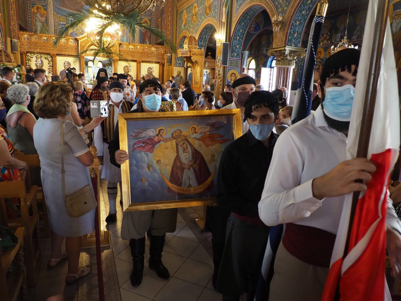 Tuż po liturgii miała miejsce procesja wokół cerkwi, w której przy obrazie Matki Boskiej Ostrobramskiej niesione były flagi Polski, Grecji oraz Prawosławnego Kościoła Grecji.