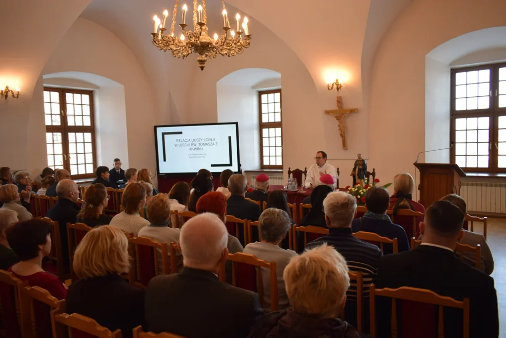 – Dusza ludzka, w odróżnieniu od dusz innych organizmów żywych, jest duszą duchową, czyli intelektualną. Jest ona bytem duchowym, który ze swej natury organizuje materię tak, aby stała się ciałem ludzkim. Dusza ludzka posiada własne istnienie, niezależne od ciała, a jednocześnie potrzebuje ciała. Ludzki intelekt i wola, choć w swoim istnieniu nie są zależne od ciała, potrzebują go do swojego funkcjonowania. W związku z tym to właśnie one stanowią zasadę, która kształtuje ludzkie życie biologiczne. Św. Tomasz, posługując się technicznym sformułowaniem Arystotelesa, określa duszę ludzką jako formę ciała — to znaczy jako to, co nadaje ciału treść, sens i określa, czym ono jest. Ciało ludzkie nie jest bytem samodzielnym, odrębnym od duszy, lecz materią ukształtowaną i zorganizowaną przez duszę ludzką – mówił prelegent.