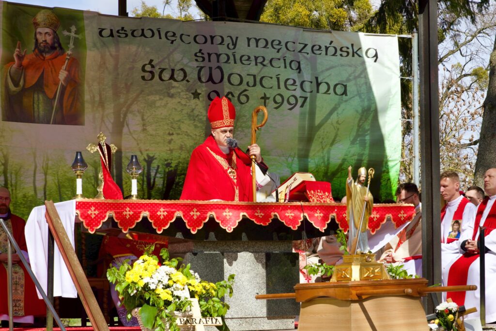 W homilii wygłoszonej podczas sumy odpustowej biskup elbląski Wojciech Skibicki podkreślił bezkompromisowość posługi św. Wojciecha. Jako biskup Pragi odznaczał się on bowiem prawdziwą nieskazitelnością widoczną m.in. w jego podejściu do dóbr materialnych. Niezwykle uczciwie zarządzał majątkiem kościelnym i z wielką troską służył ubogim. Niemal codziennie zapraszał do swojego domu 12 biednych ludzi, których podejmował posiłkiem. Prowadził przy tym ascetyczny tryb życia prześcigając swoim umartwieniem nawet mnichów żyjących charyzmatem pokuty i wynagrodzenia. Wojciech głosił Ewangelię bezkompromisowo sprzeciwiając się chociażby niewolnictw czy też wielożeństwu, co było jedną z przyczyn jego wygnania ze stolicy biskupiej. Jako biskup lokalnego Kościoła nie mógł bowiem milczeć wobec przyzwolenia na krzywdzące i sprzeczne z Ewangelią praktyki.