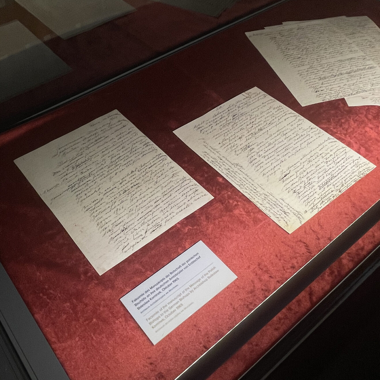 Wystawa jest dwujęzyczna (niemiecko-angielska), prezentuje najważniejsze dokumenty i drogę pojednania polsko-niemieckiego. Przygotowało ją Centrum Historii Zajezdnia z Wrocławia.