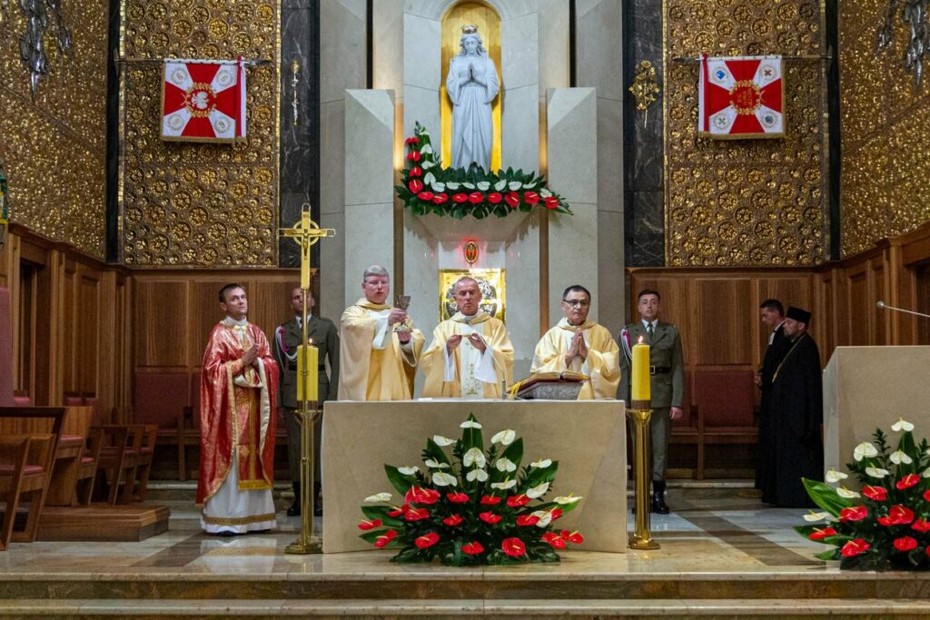 Do katedry polowej wprowadzono Chorągiew Wojska Polskiego. Liturgii towarzyszyła obecność czterech pocztów sztandarowych.