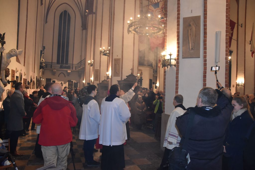Fot. Dorota Giebułtowicz / KAINa ścianach warszawskiej archikatedry zawisły w piątek stacje Drogi Krzyżowej, pierwsze w kilkusetletniej historii tej świątyni. Stacje zostały poświęcone przez kard. Kazimierza Nycza, następnie bp Michał Janocha poprowadził nabożeństwo, do którego rozważania przygotował autor i wykonawca projektu artysta rzeźbiarz Łukasz Krupski. – Jestem jest imieniem Boga; istnienie, życie jest Jego imieniem. I to jest najważniejsze przesłanie tej Drogi Krzyżowej, która nie jest drogą śmierci, ale życia – mówił artysta.