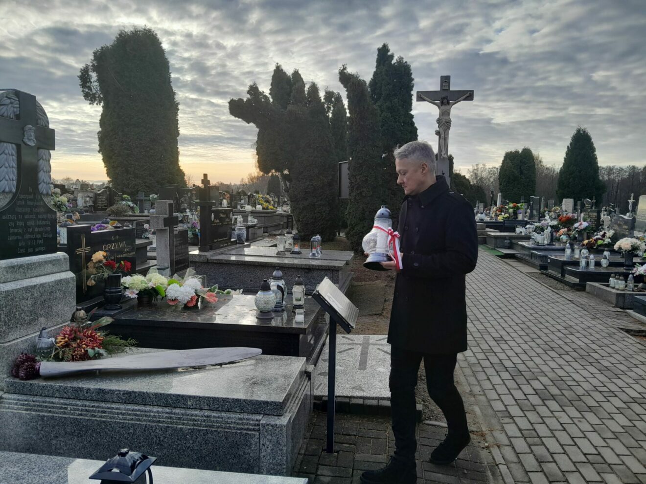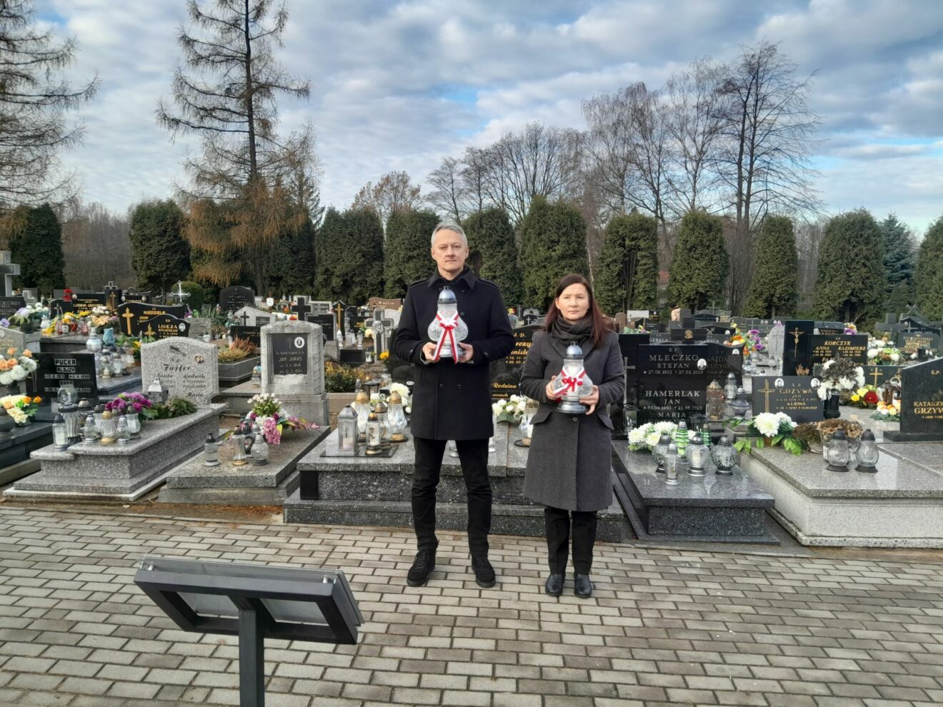 Przy pomniku-grobowcu lotnika na jawiszowickim cmentarzu złożono kwiaty i zapalono znicze. Ciało Ellina spoczywało tu po wojnie do czasu ekshumacji w 1947 r. Znicze zapalili: burmistrz Brzeszcz Radosław Szot oraz prezes Fundacji Pobliskie Miejsca Pamięci Auschwitz-Birkenau Agnieszka Molenda-Kopijasz.