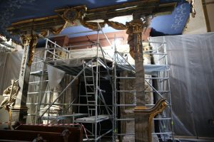– Te nawarstwienia usunęliśmy i dotarliśmy do materii oryginalnej, którą uzupełniliśmy i poddaliśmy kompleksowej konserwacji. W nawie północnej poza zniszczeniami malarstwa i tynków spotkaliśmy się ze zniszczeniami wątku ceglanego znajdującego się na sklepieniu. Doszło do niego najprawdopodobniej na skutek uderzenia pioruna lub innego tąpnięcia. Wymagało ono od nas podjęcia dodatkowych prac prowadzonych od strony strychu. Część z tych prac polegała na rekonstrukcji i przebudowie wątku ceglanego i odpowiedniego wzmocnienia konstrukcyjnego – poinformował Roland Róg.