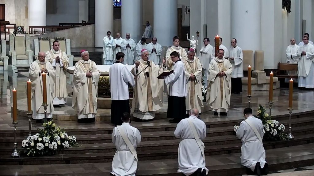 Fot. YouTube / Katedra KatowiceDo ciągłego zwracania się ku górze, do Chrystusa zachęcał dziś diakonów wyświęcanych na kapłanów metropolita katowicki abp Wiktor Skworc. Uroczystość w katedrze Chrystusa Króla w Katowicach, podczas której święcenia przyjęło trzech diakonów, była transmitowana na antenie diecezjalnego Radia eM.