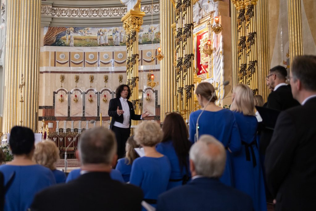 Koncert podzielono na dwie części – chóralną i instrumentalną. Wykonawcą pierwszej z nich był Chór Bazyliki Licheńskiej „Stabat Mater” pod dyrekcją Jacka Hyżnego. Zespół wykonał „Panis Angelicus” Cesara Franka (solistka: Dominika Jackowska), „Laudate Dominum” Wolfganga Amadeusza Mozarta (solistka: Anita Furgol-Kownacka) oraz hymn „Va, pensiero” pochodzący z opery „Nabucco” Giuseppe Verdiego. Śpiewakom na organach towarzyszył Paweł Opala, jeden z organistów bazyliki licheńskiej.