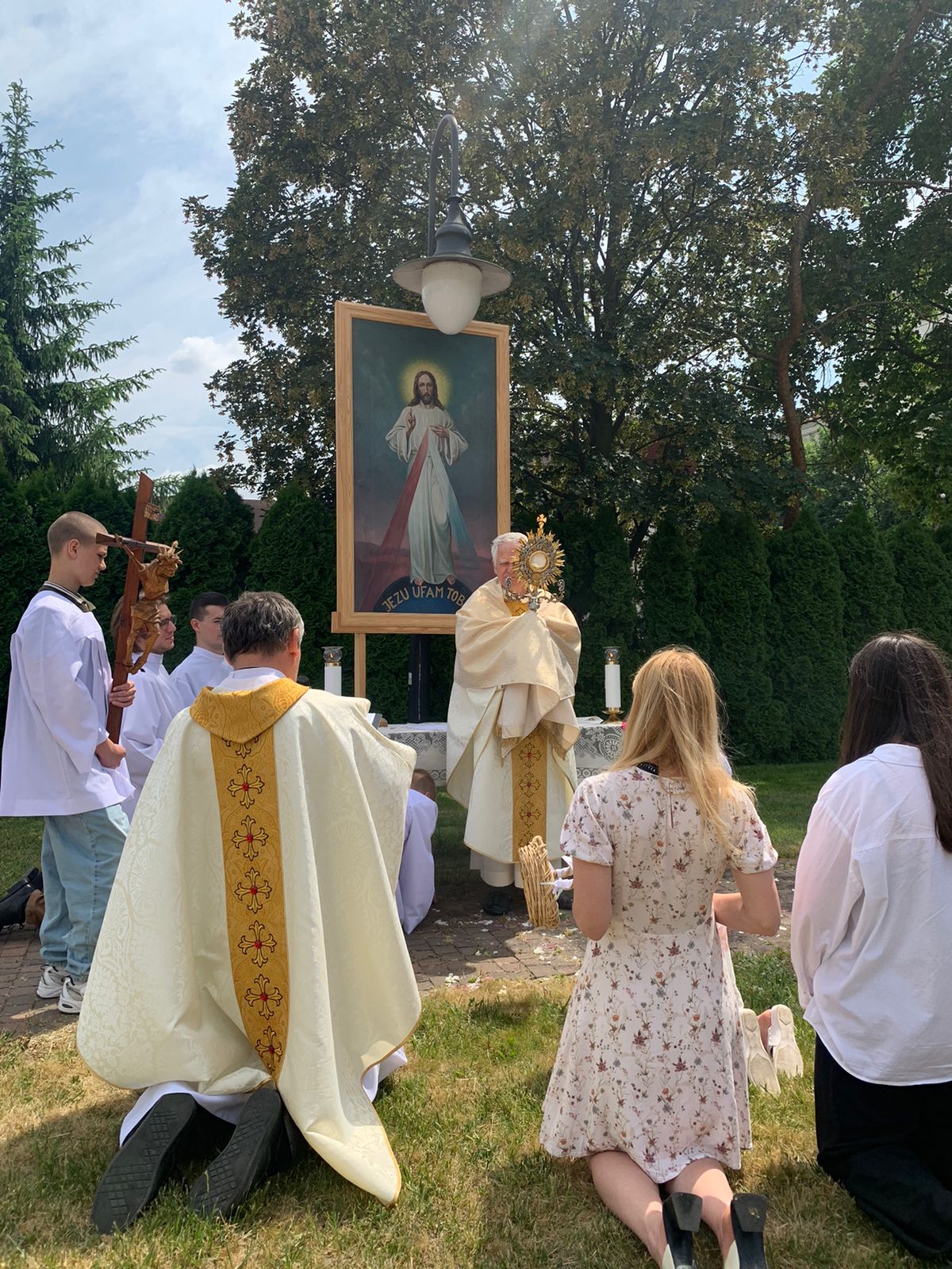 Ks. Draus poprowadził następnie procesję do czterech ołtarzy na placu przy kościele, na których umieszczono obrazy przywiezione przez uchodźców z Ukrainy a także wykonane w szkole pisania ikon, prowadzone przez wspólnotę w Świdniku. Znalazła się tam także fotografia błogosławionej Rodziny Ulmów, którzy są patronami duszpasterstwa przy bazylice.