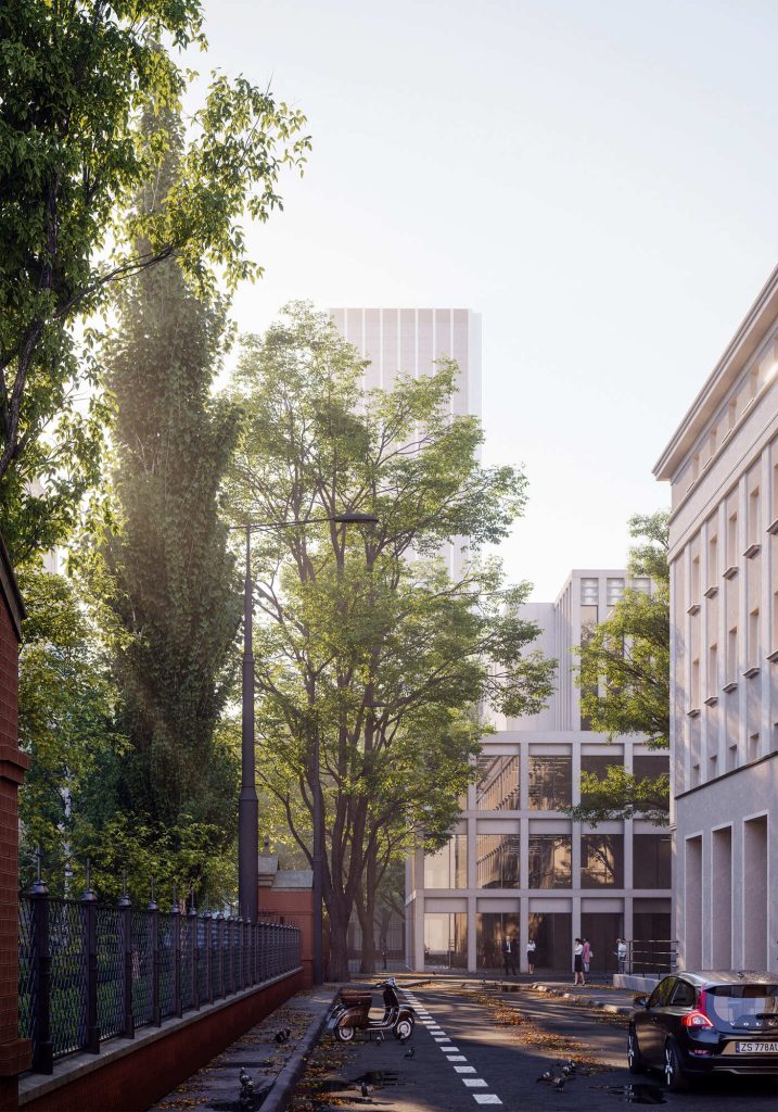 – W intensywnej zabudowie tej części Śródmieścia bryła plebanii doskonale wkomponuje się w kontekst urbanistyczny. Elewacja frontowa kontynuująca kameralną pierzeję ul. św. Barbary, część korpusu budynku nawiązująca wysokością do sąsiadującej wikariatki czy pięciokondygnacyjne skrzydło poprzeczne korespondujące z linią zabudowy oraz wysokością wybudowanego po wojnie tylnego skrzydła teatru Roma. To kilka przykładów w jaki sposób bryła budynku będzie współgrać z sąsiadującą zabudową. Dom parafialny od strony ul. Emilii Plater będzie kończył się nie przekraczając linii elewacji frontowej kościoła śś. Ap. Piotra i Pawła – mówi KAI Damian Majsterek, dyrektor projektu.
