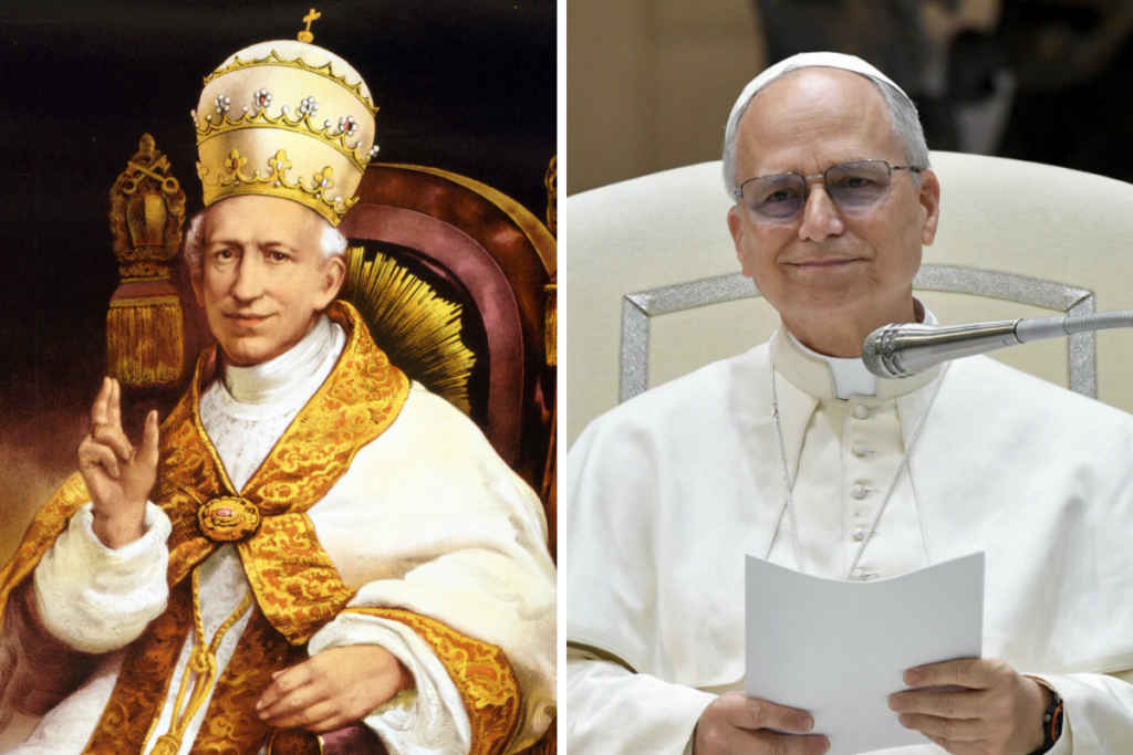 Papież Leon XIII panował od 1878 do 1903 roku, był więc pierwszym papieżem XX wieku. Żył w czasie głębokich przemian społecznych, w czasie, gdy Kościół potrzebował odpowiedzi na wiele palących problemów społecznych tamtych dni. Papież Leon XIV wyjaśnił, dlaczego wybrał właśnie to imię, odwołując się w szczególności do wielkiej karty katolickiej nauki społecznej — encykliki Rerum novarum z 1891 roku, która okazała się fundamentem dla wszelkiego późniejszego nauczania społecznego Kościoła.