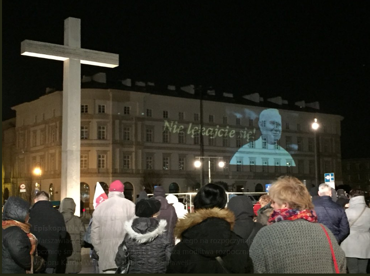 Błogosławieństwo ma formę krzyża. Tego nas uczył Jan Paweł II swoim życiem swoim umiweraniem, tego nas uczył Benedykt XVI, tego nas dziś uczy Franciszek – mówił na warszawskim pl. Piłsudskiego bp Michał Janocha. Mieszkańcy Warszawy spotkali się tam na wieczornym czuwaniu modlitewnym w 13. rocznicę śmierci Jana Pawła II.