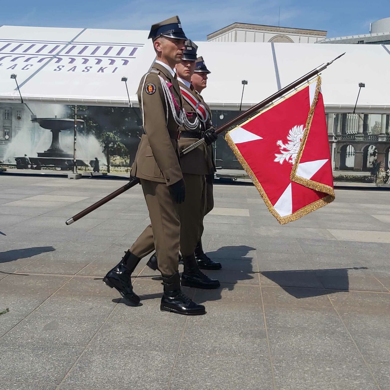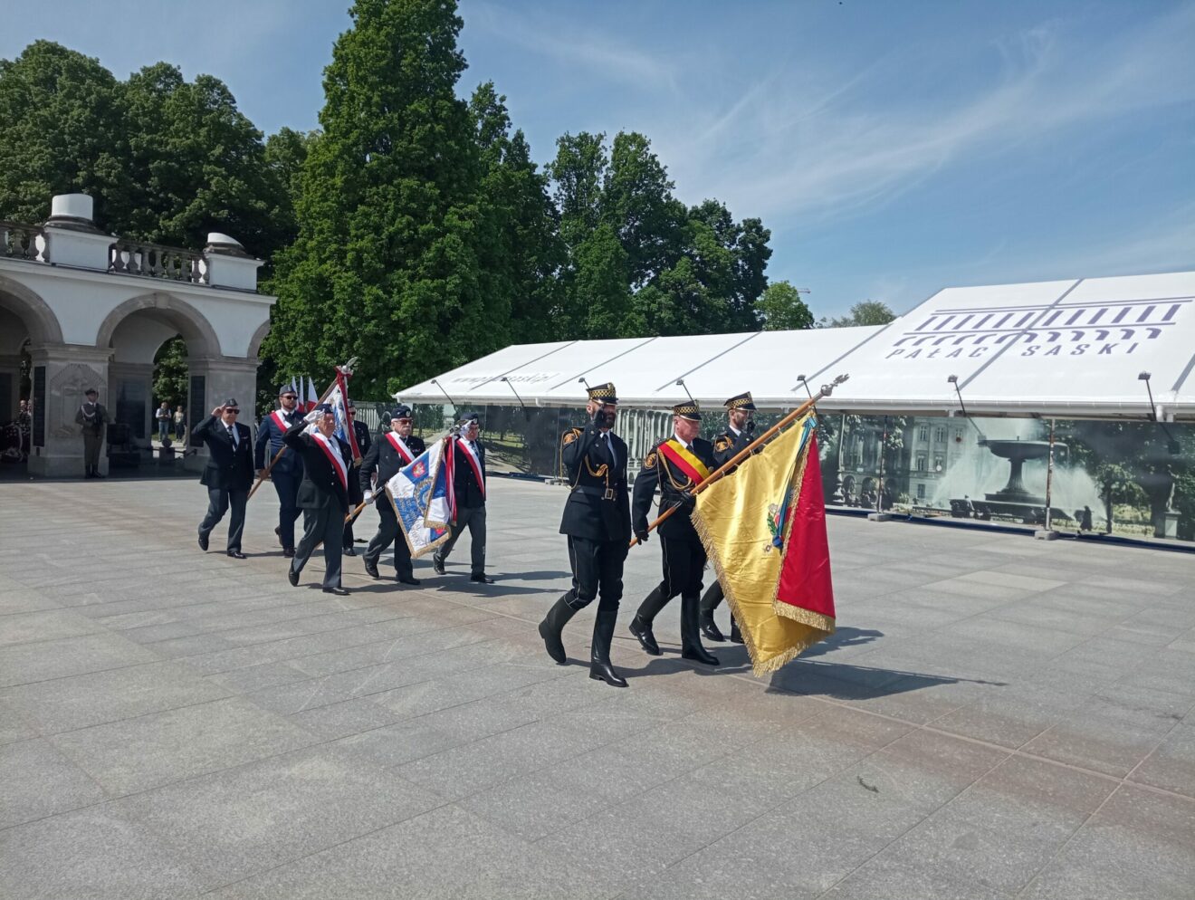 Uroczystość przy Grobie Nieznanego Żołnierza poprzedziło złożenie kwiatów pod tablicą „Ku Czci Cywilnych Ofiar II wojny światowej” w Ogrodzie Saskim.