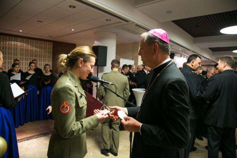 Zebrani odmówili Modlitwę Pańską, a bp Guzdek pobłogosławił opłatki, którymi podzielili się uczestnicy. Podczas składania życzeń z koncertem kolęd wystąpił Chór Wojskowej Akademii Technicznej.