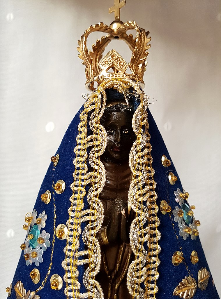 Mierząca 39 cm figurka Matki Bożej z Aparecida pochodzi z 1650 r. i jest wykonana z terakoty przez benedyktyńskiego mnicha – brata Augustyna od Jezusa. Obecnie na skutek dłuższego przebywania w wodzie mocno poczerniała. Można więc powiedzieć, że znowu spotkały się dwa wizerunki Czarnej Madonny.