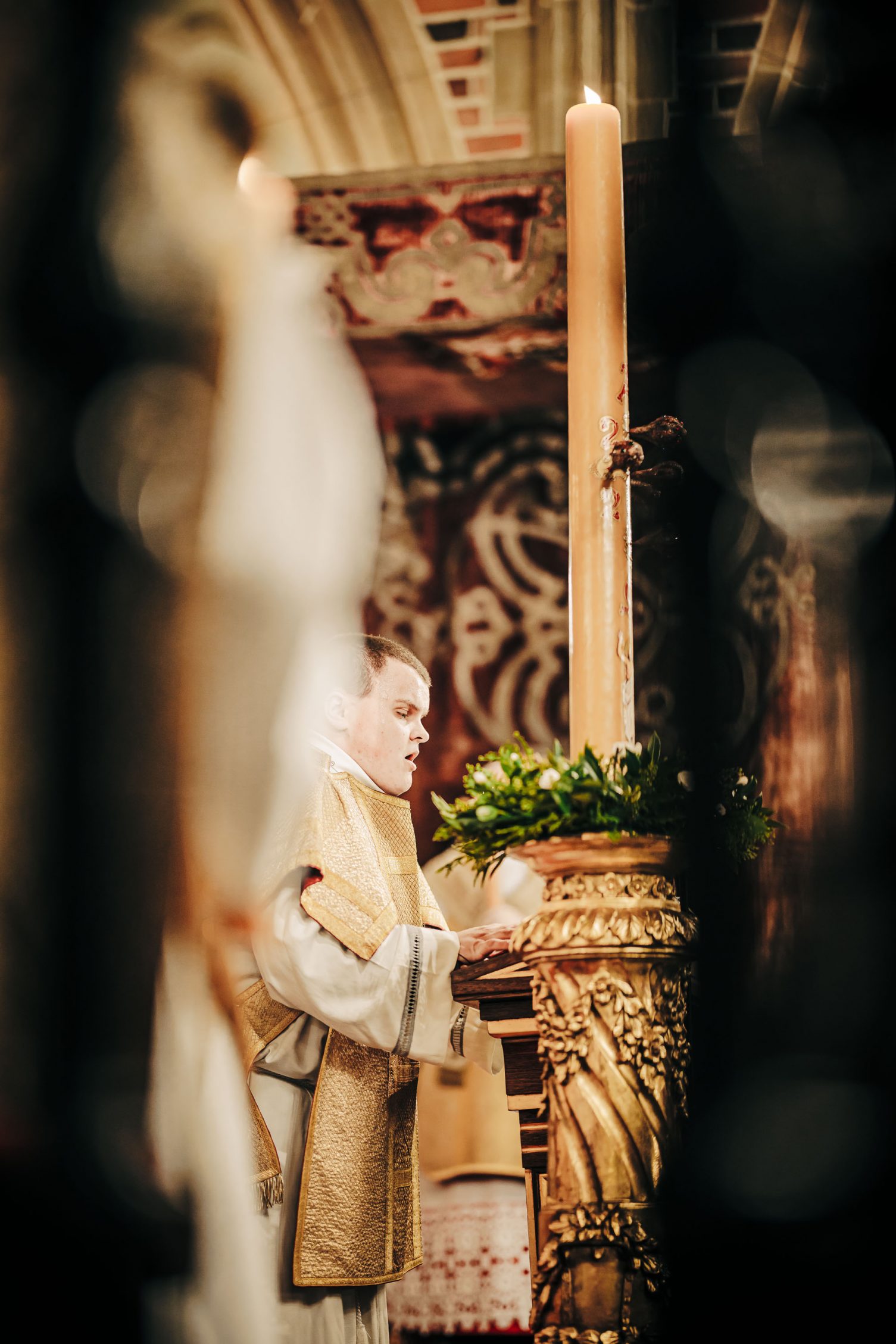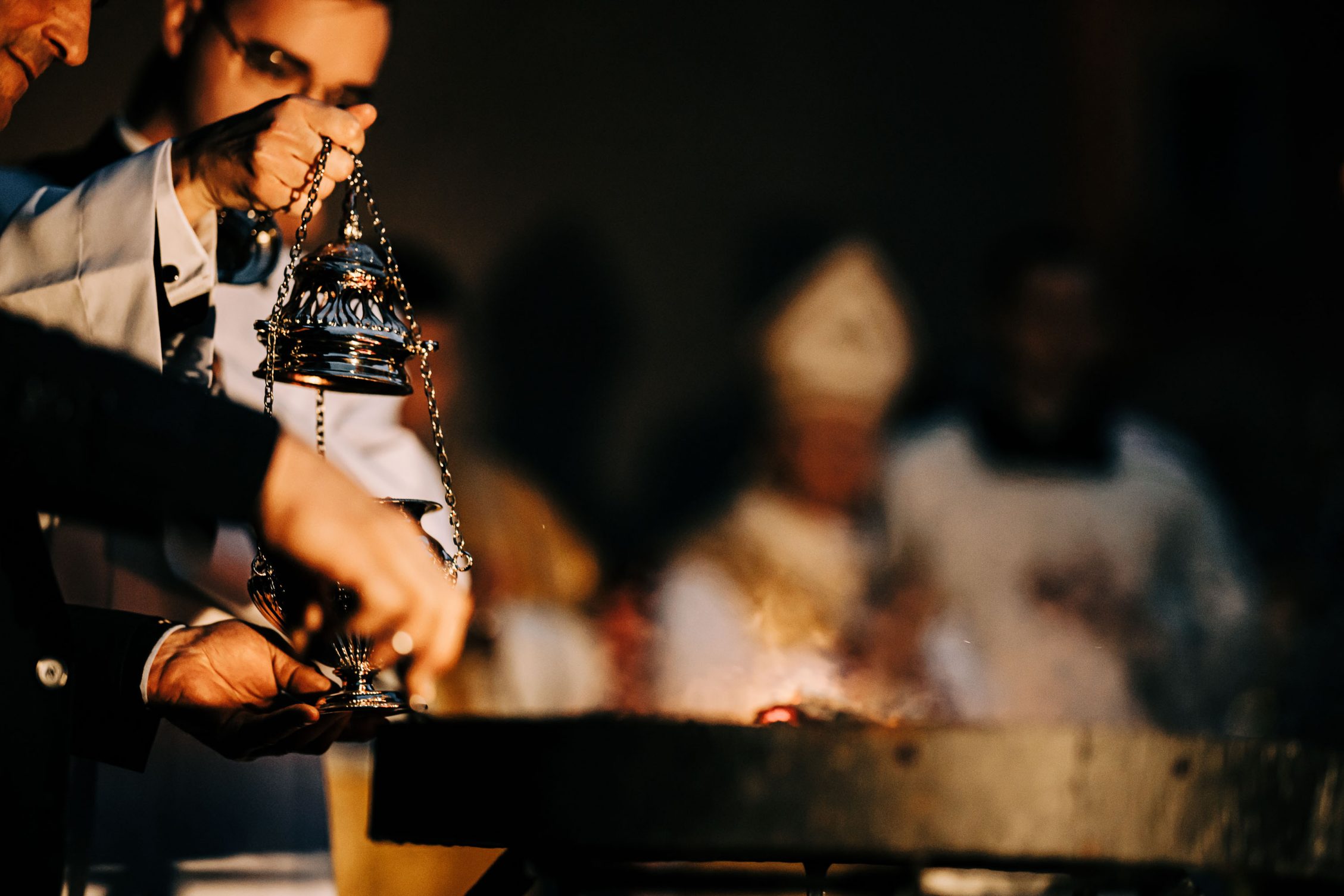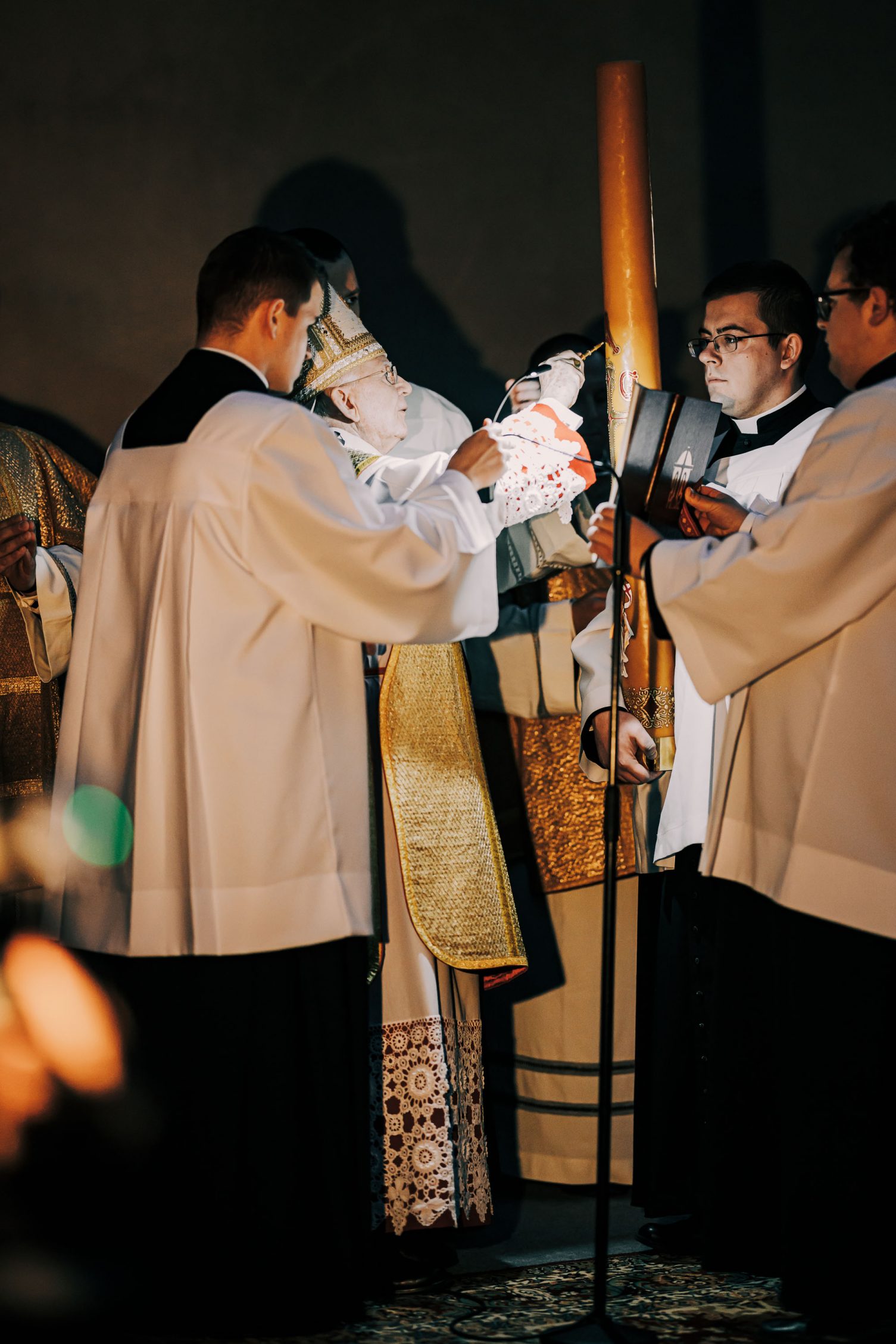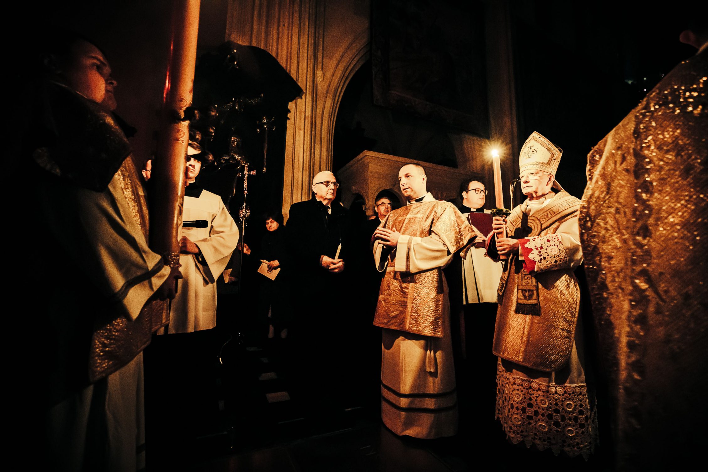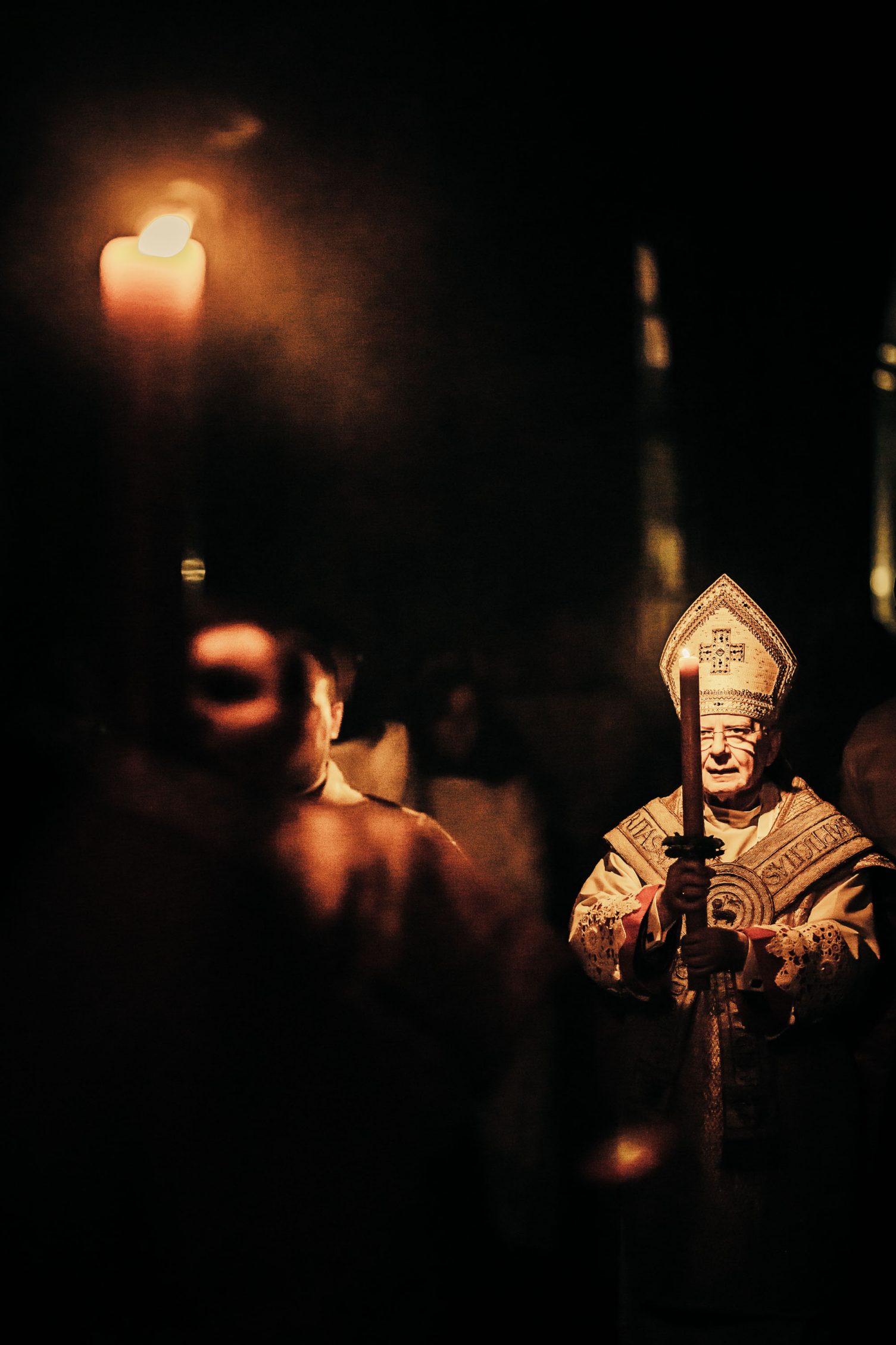 Fot. Piotr TumidajskiWielkanoc zaczyna się już w sobotę po zachodzie słońca. Rozpoczyna ją liturgia światła. Na zewnątrz kościoła kapłan święci ogień, od którego następnie zapala się Paschał – wielką woskową świecę, która symbolizuje zmartwychwstałego Chrystusa.