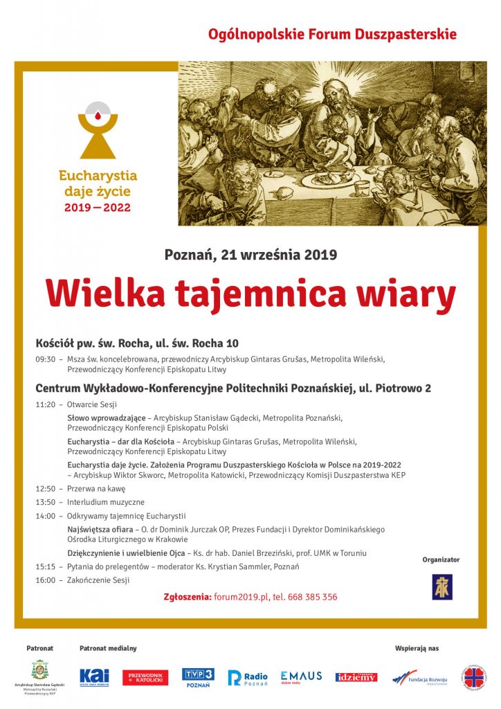 Fot. forum2019.plW Poznaniu 21 września odbędzie się Ogólnopolskie Forum Duszpasterskie poświęcone Eucharystii jako „Wielkiej tajemnicy wiary”. Gościem spotkania, które w stolicy Wielkopolski odbędzie się po raz jedenasty, będzie abp Gintaras Grušas, metropolita wileński.