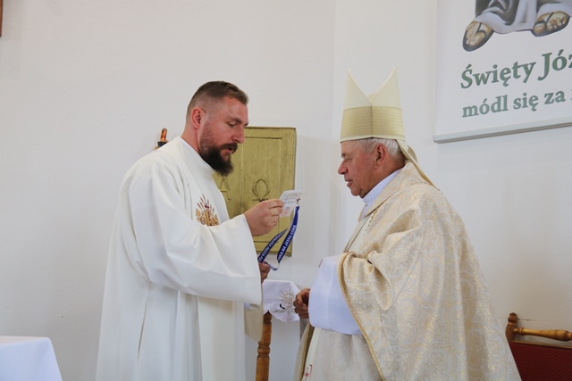Z rąk przewodnika 280. Wieruszowskiej Pieszej Pielgrzymi biskup otrzymał legitymację z nr 1 „Przyjaciel Pielgrzymki”.