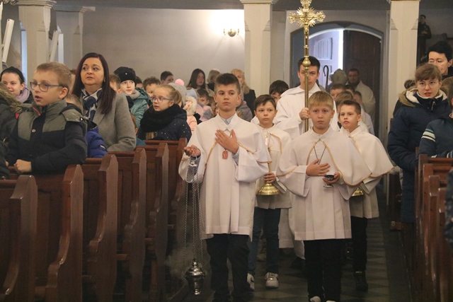 – Jan Paweł II był wielkim człowiekiem. Zostawił nam wielką spuściznę ważnych myśli nauczania, ale był także świętym człowiekiem w Kościele – mówił bp Damian Bryl, który przewodniczył Mszy św. w kościele św. Teresy od Dzieciątka Jezus w Wołczynie. Biskup kaliski poświęcił sztandar Szkoły Podstawowej im. św. Jana Pawła II.